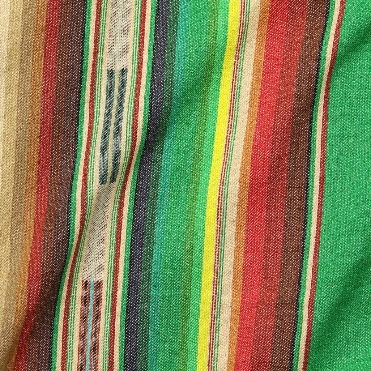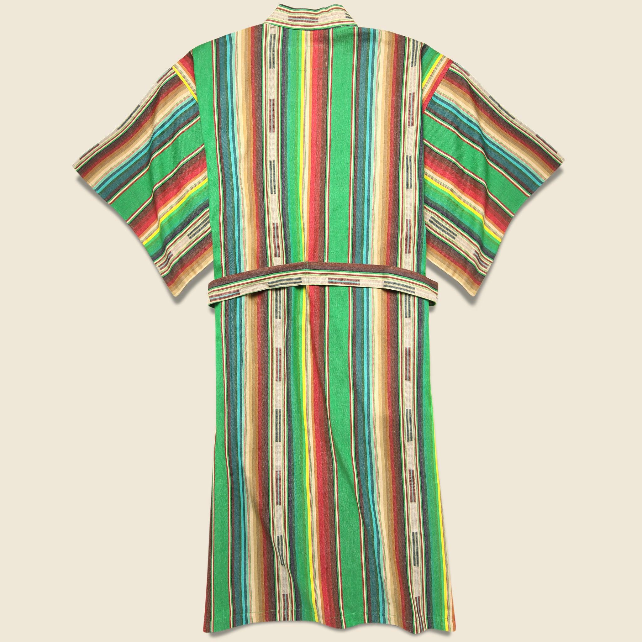 El Cosmico’s signature kimono-style robe is made by hand with super soft, 100% cotton in their own green and red blanket stripe pattern and comes with two waist pockets and an attached waist tie. Made in a co-op in India devoted to promoting and preserving indigenous weaving and dyeing techniques, each piece may have s