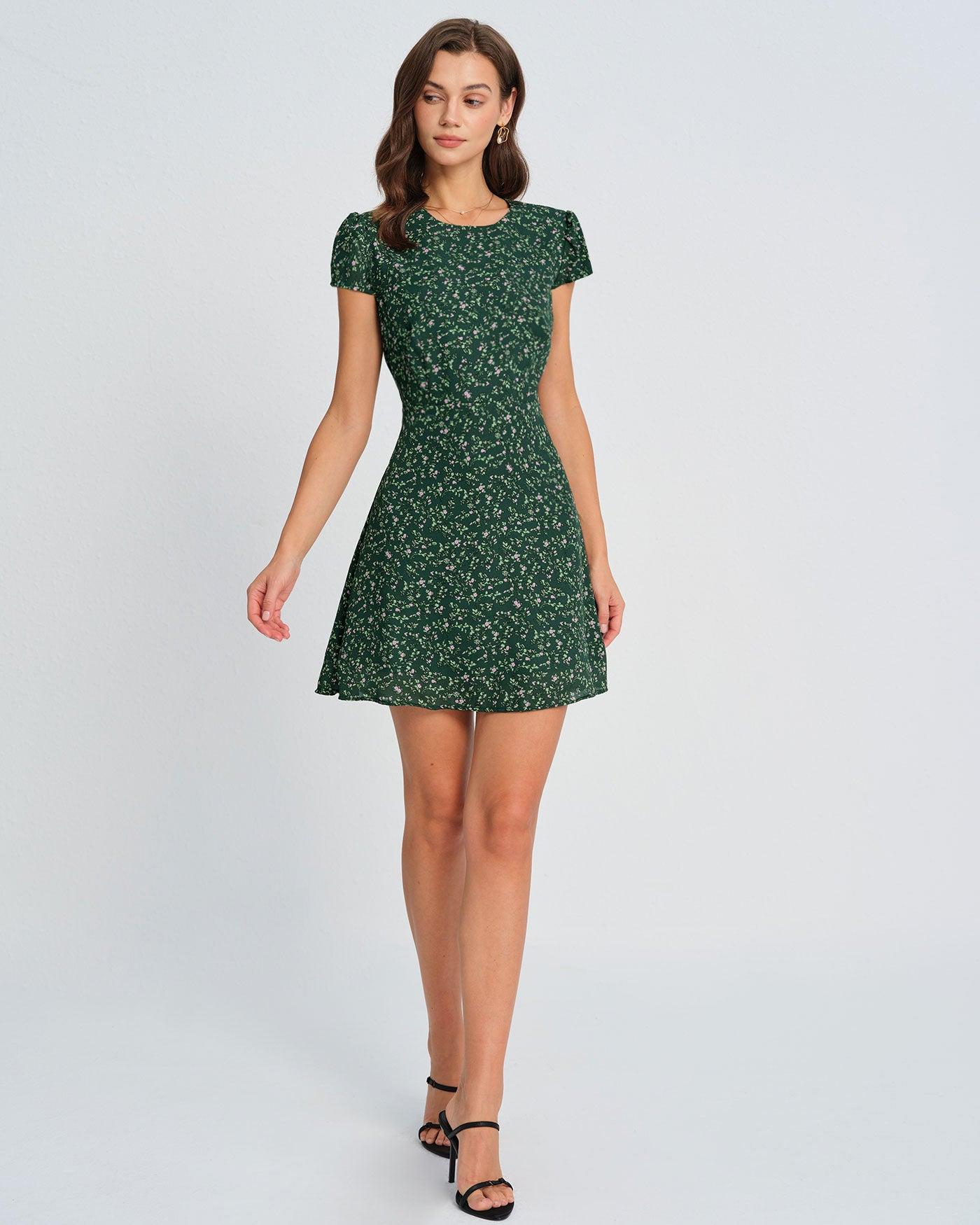 - Occasion: Daily - Style: Casual - Season: Summer, Spring - Back Neckline: Open - Fabric Stretch: No Stretch - Waist: Natural Waisted - Sleeve Length: Short Sleeves - Sleeve Type: Puffed Sleeve - Pattern Type: Floral - Embellishment: Zipper, Button - Neckline: Round Neck - Dress Type: Tunic - Silhouette: A-Line - Fabric: Polyester - Lining: Polyester - Material: Polyester