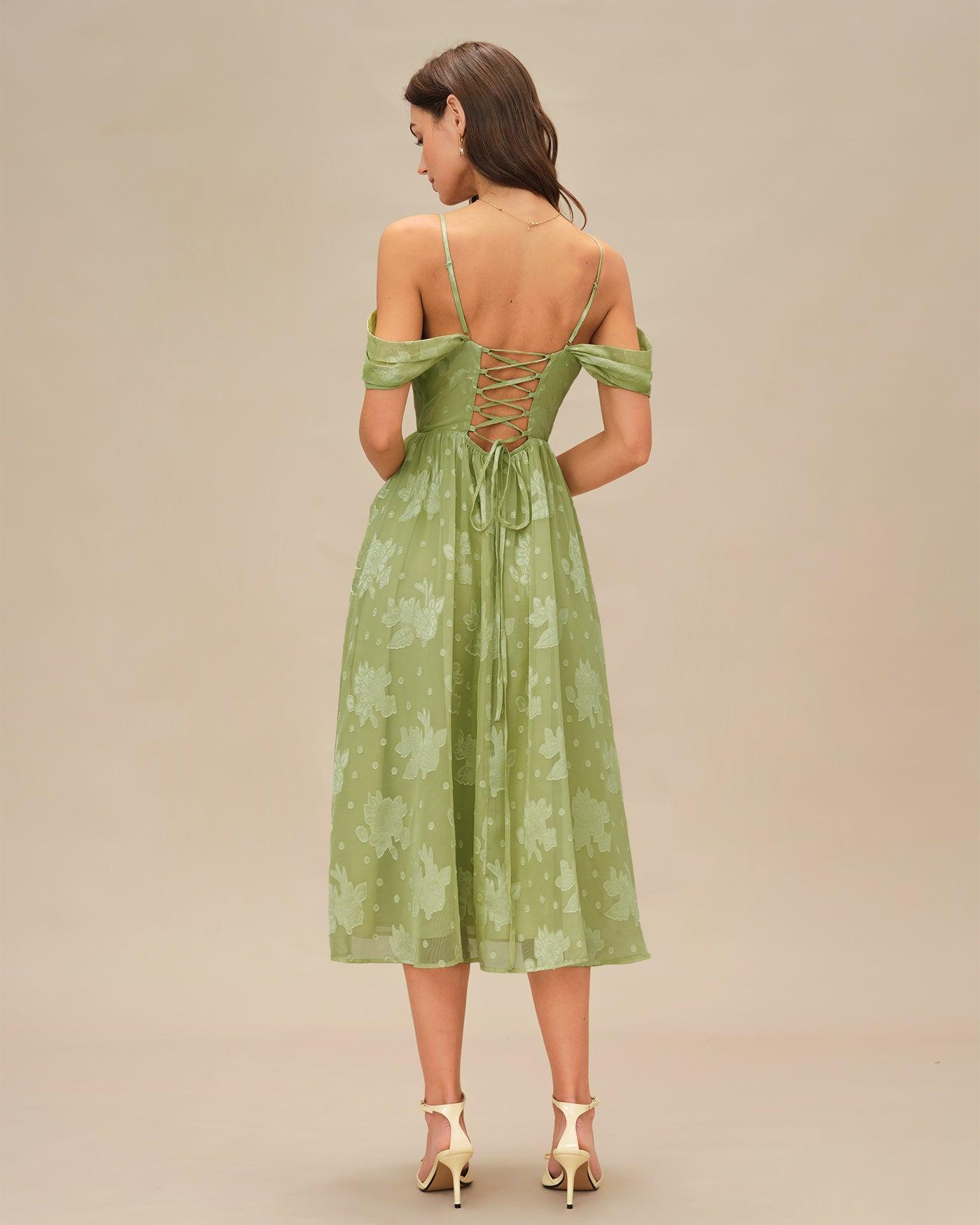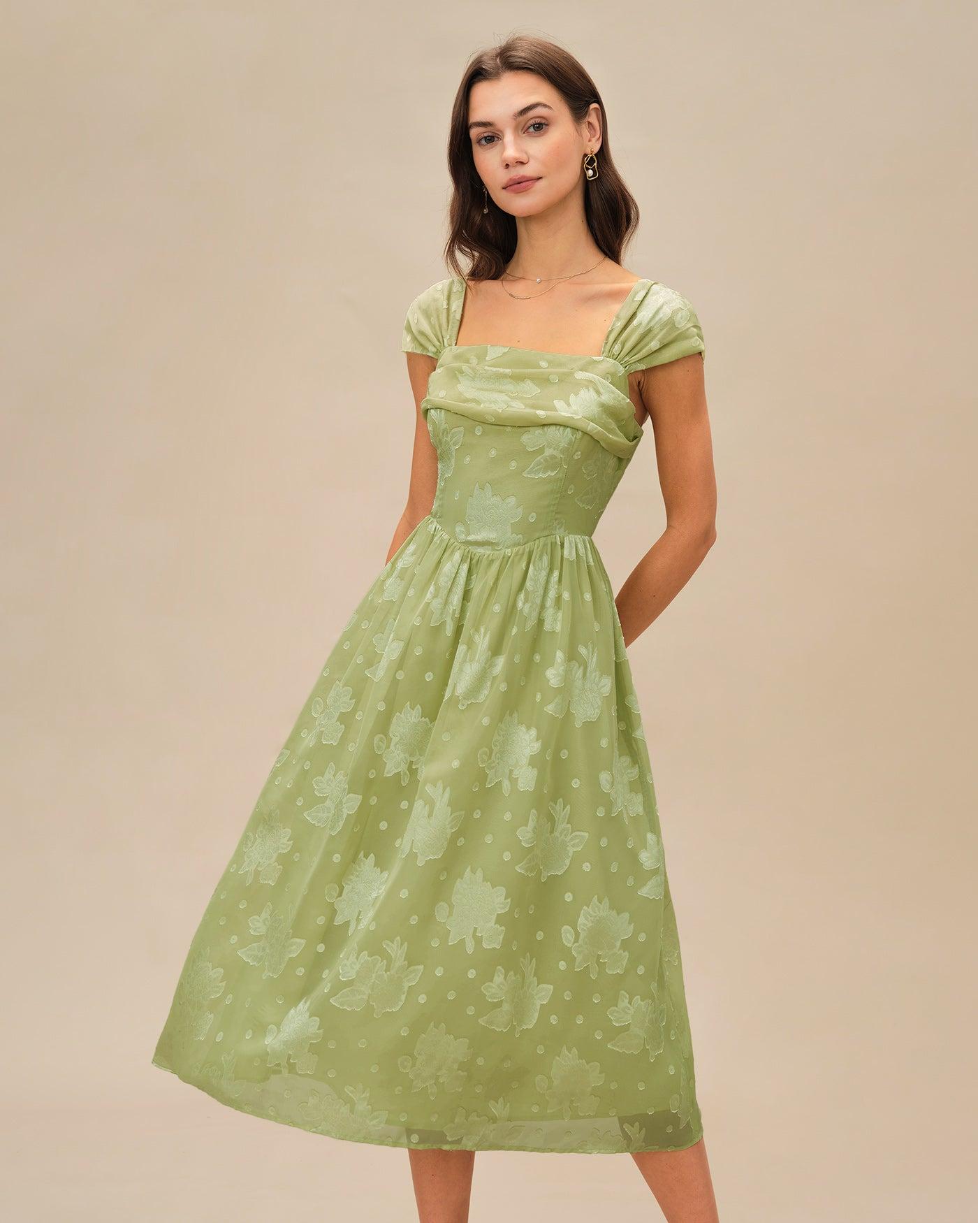 - Occasion: special occasion - Style: Formal - Back Neckline: X Cross - Fabric Stretch: No Stretch - Waist: Natural Waisted - Sleeve Type: Sleeveless - Pattern Type: Floral - Embellishment: Jacquard, Tie, Ruched - Neckline: Square Neck - Fabric: Polyester - Lining: Polyester - Material: Jacquard