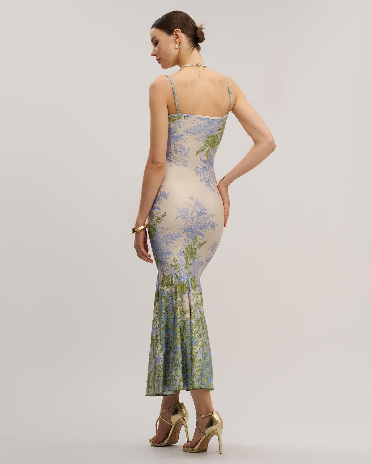 Green Floral Slip Mermaid Maxi Dress