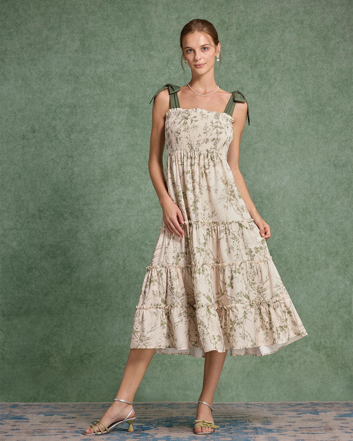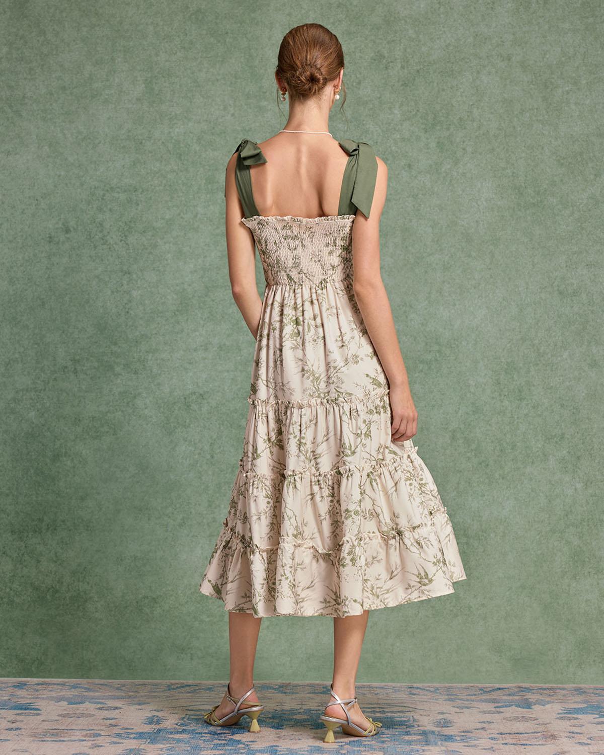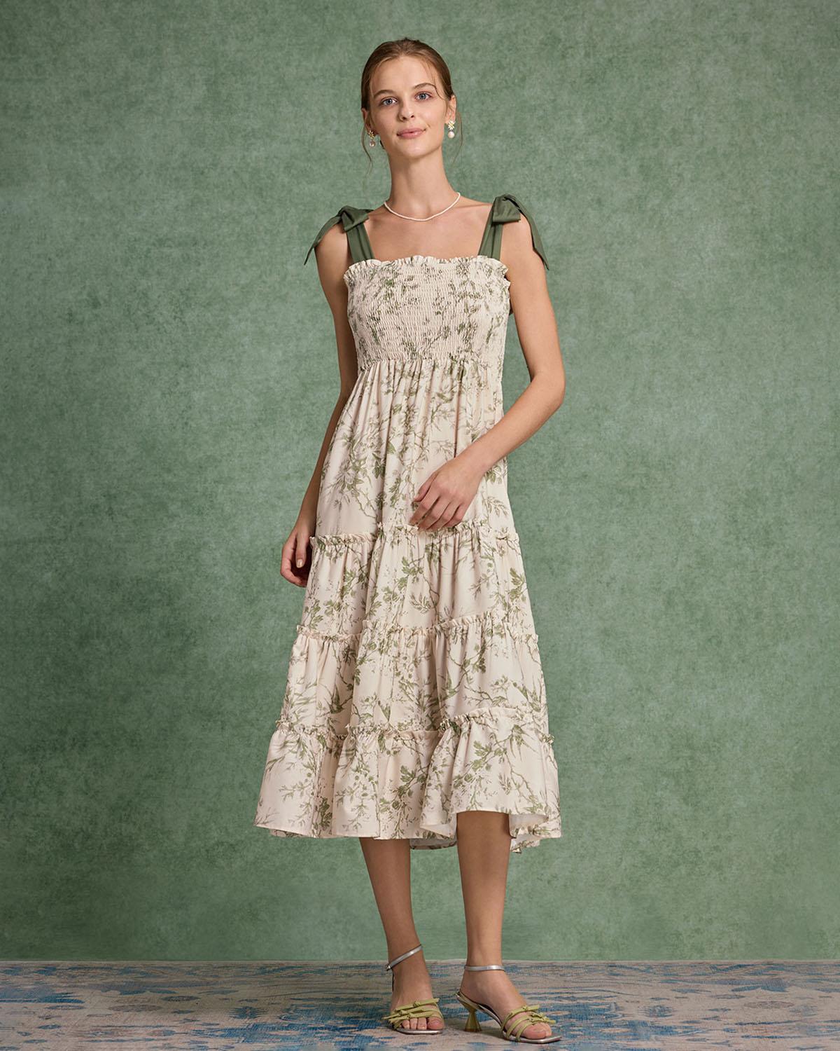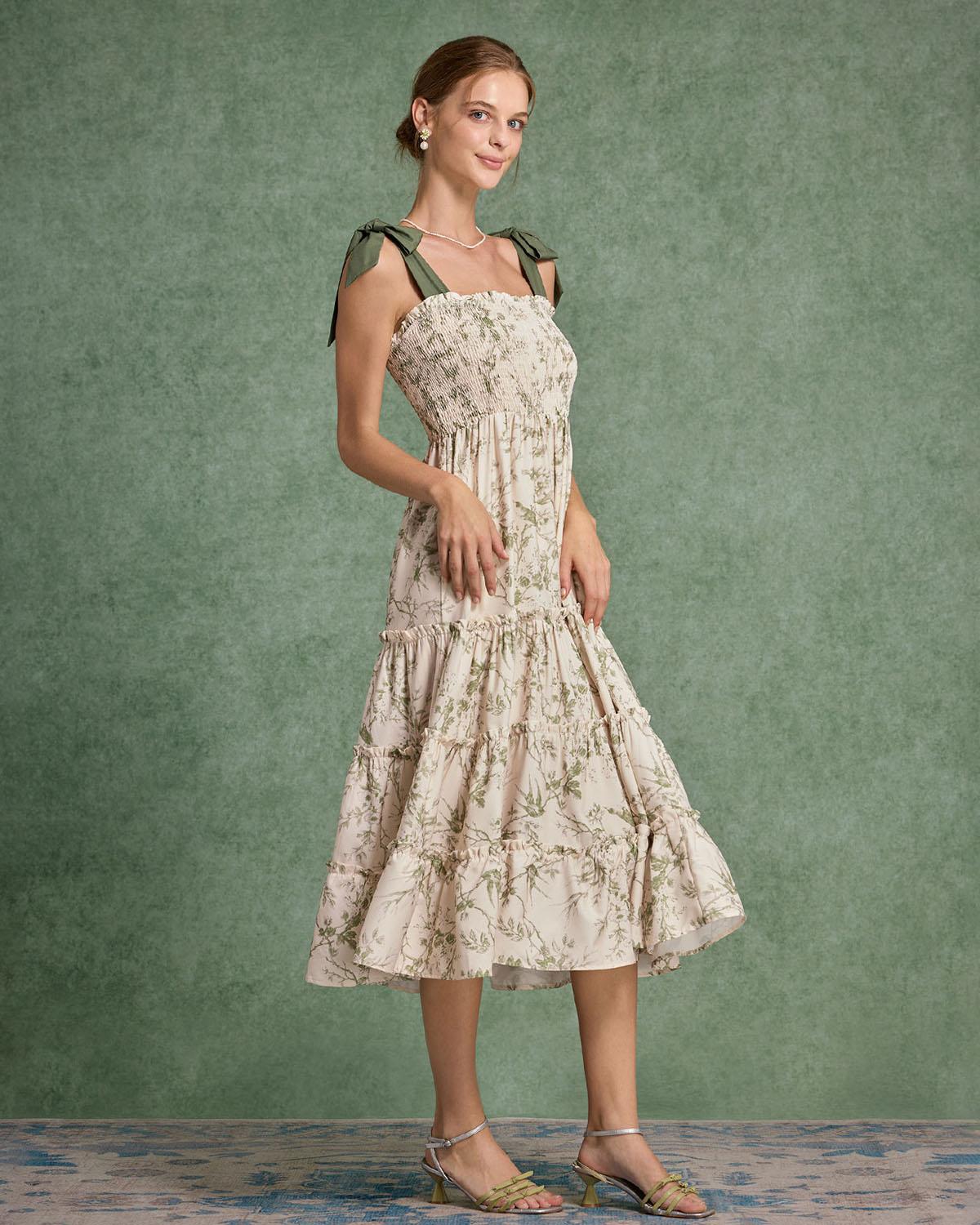 - Occasion: Vacation - Style: beach - Fabric Stretch: No Stretch - Waist: Natural Waisted - Sleeve Length: Sleeveless - Sleeve Type: Sleeveless - Pattern Type: Floral - Embellishment: Shirred, Tie, Zipper - Neckline: Square Neck - Dress Type: Sheath dress - Silhouette: A-Line - Fabric: Polyester