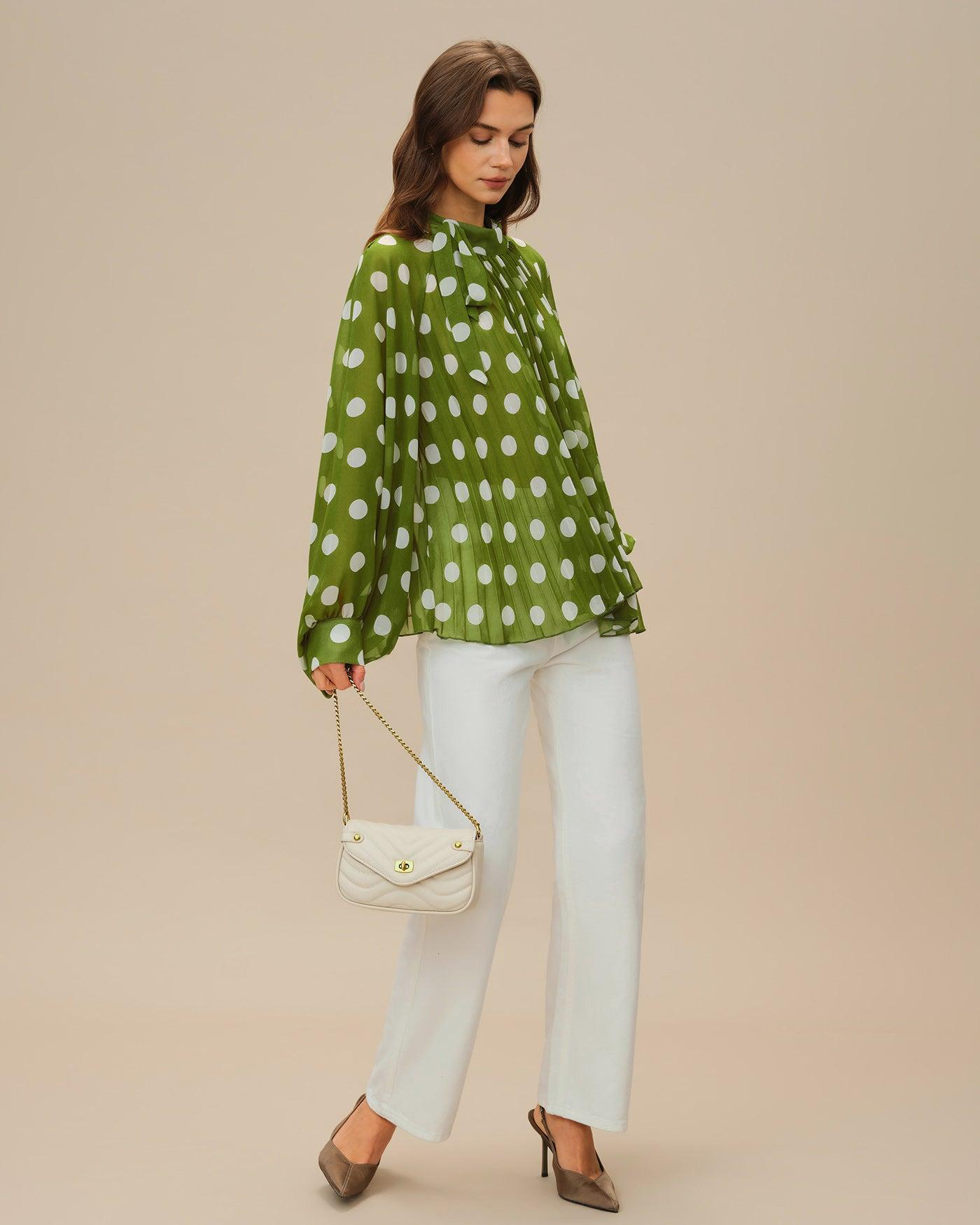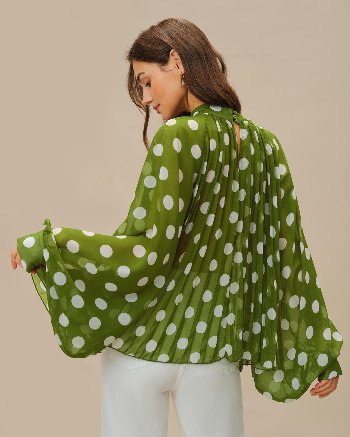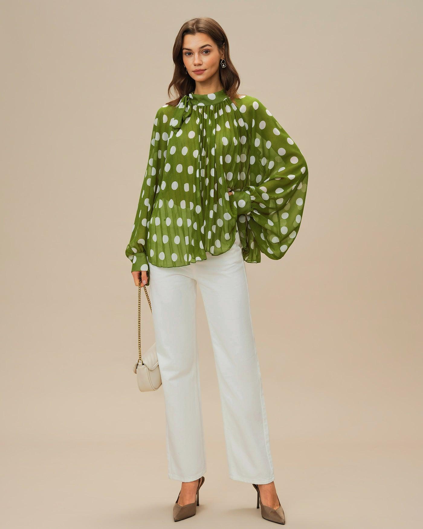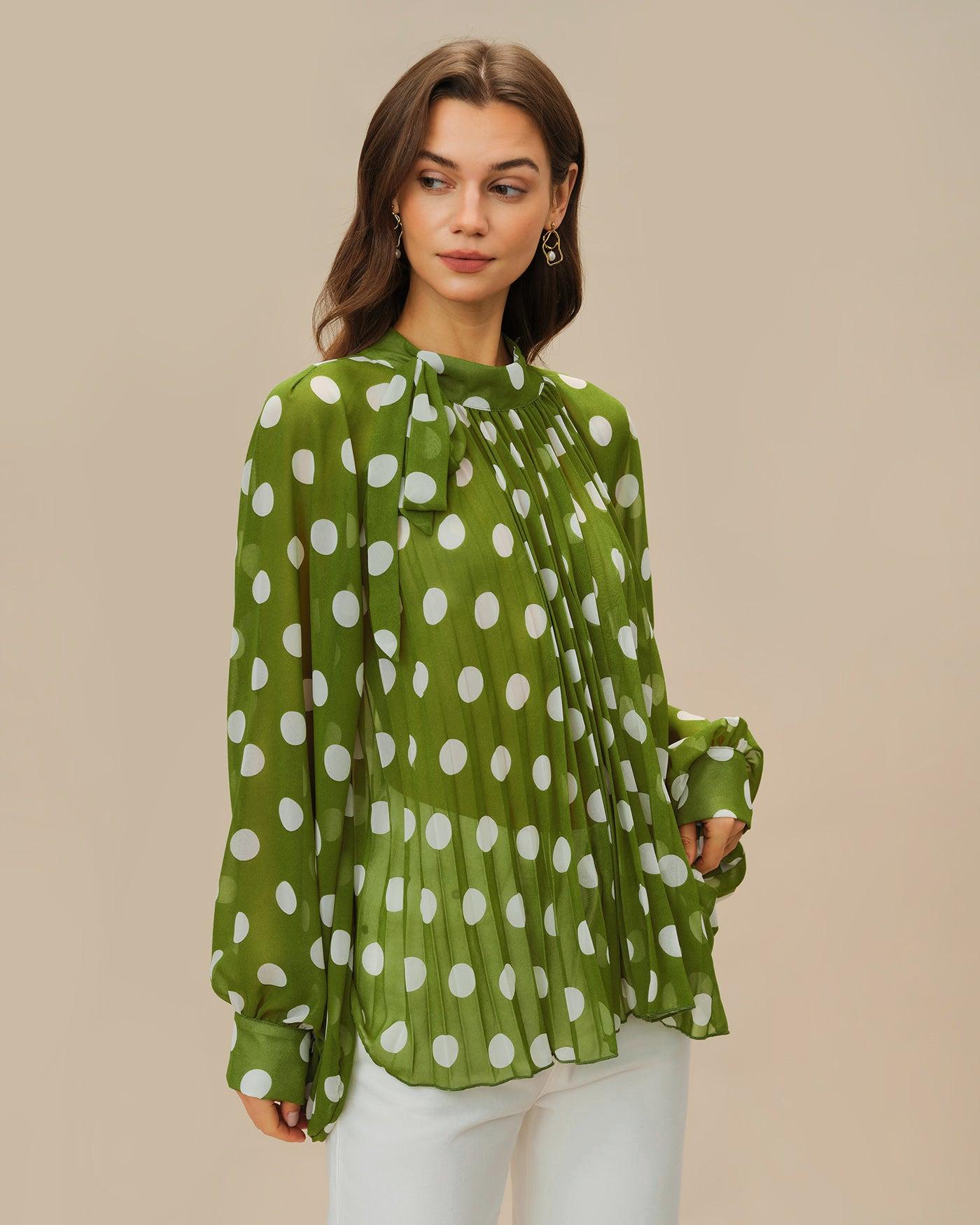 - Occasion: Daily - Style: Casual - Season: Summer, Spring - Top Length: Long - Fabric Stretch: No Stretch - Sleeve Length: Long Sleeves - Sleeve Type: Lantern Sleeve - Pattern Type: Polka Dot - Embellishment: See Through, Button - Neckline: Turtle - Fit: Oversized - Fabric: Polyester 100.0% - Material: Polyester