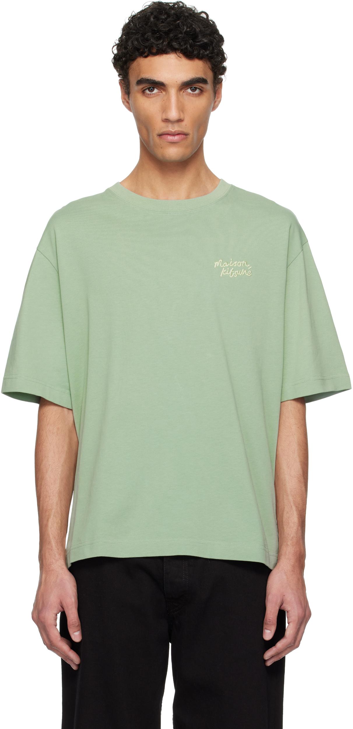 Green 'Maison Kitsuné' Handwriting Embroidery Oversize T-shirt