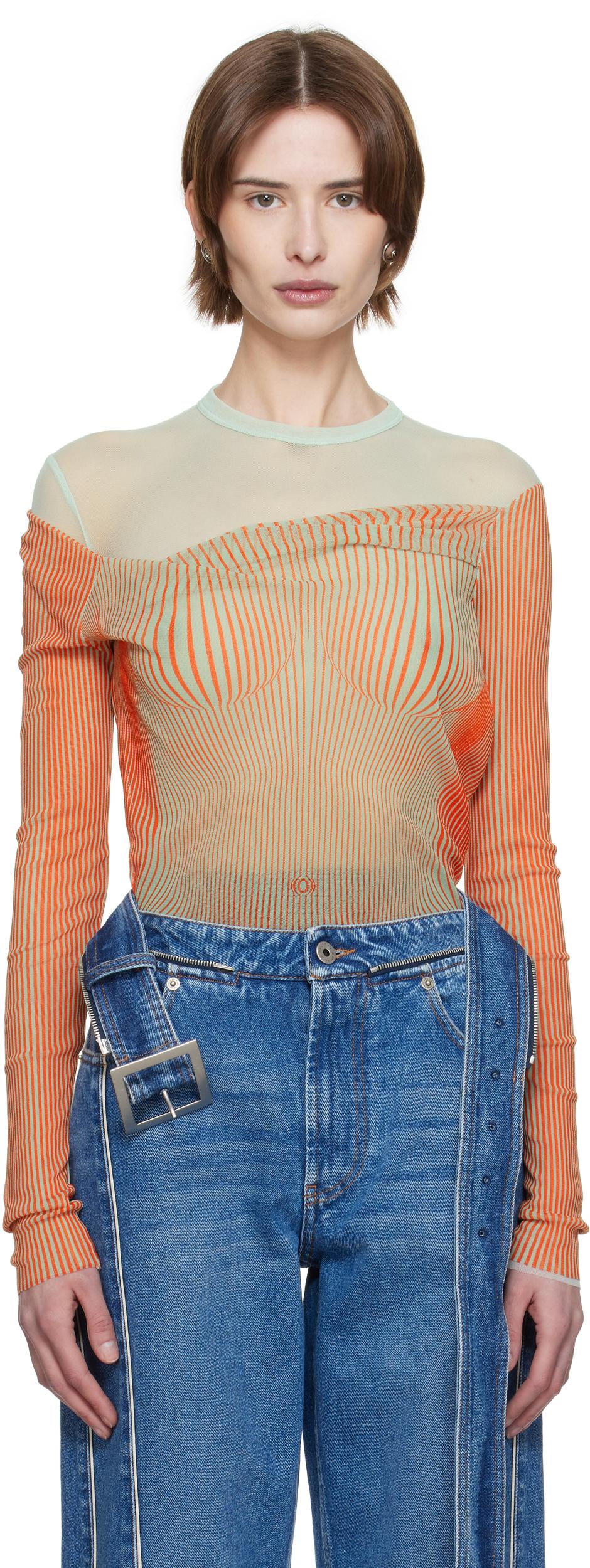 Green & Orange 'The Draped Body Morphing' Bodysuit