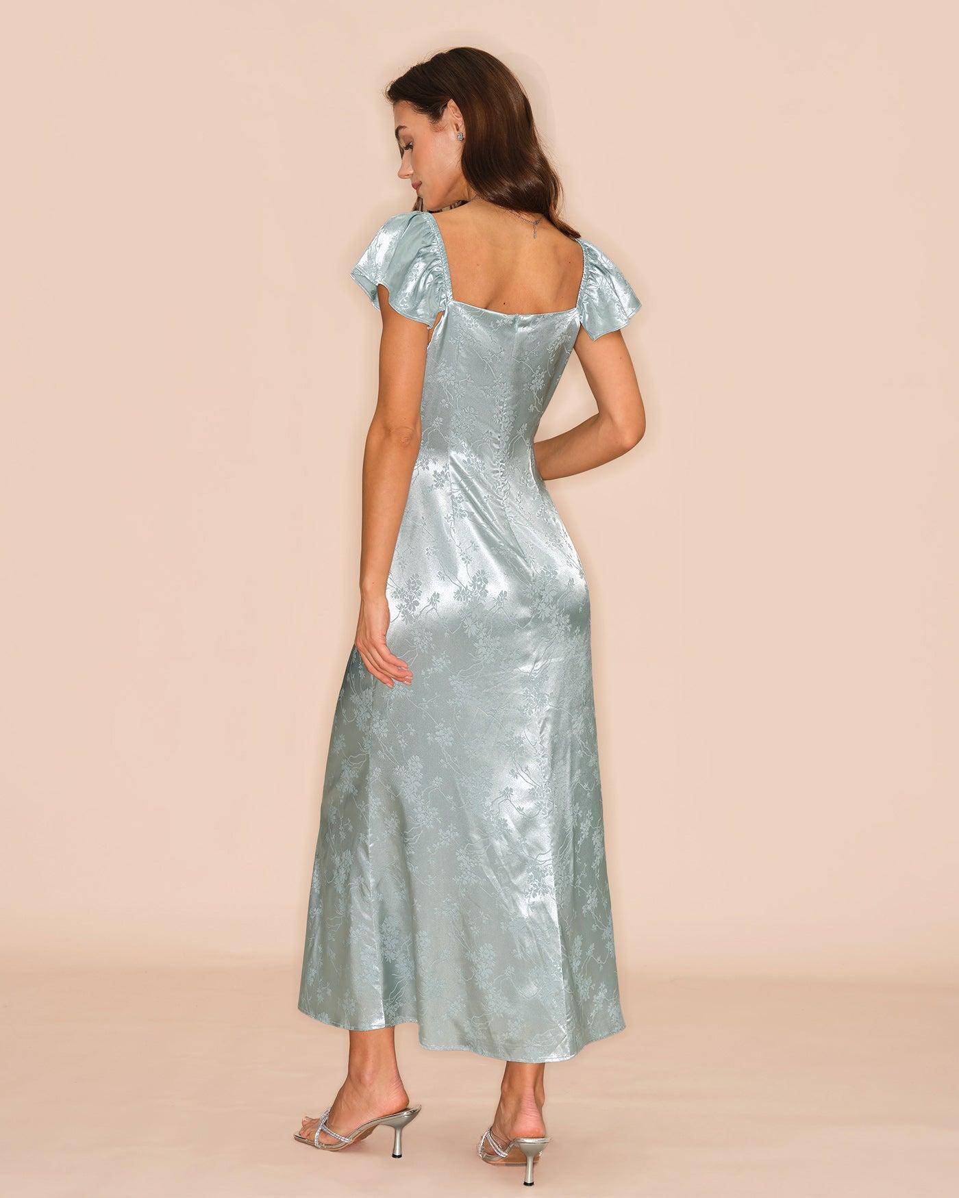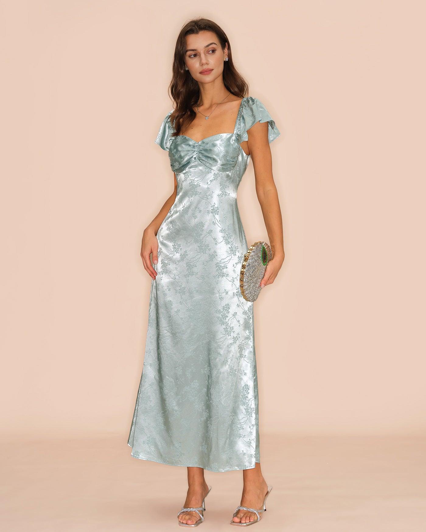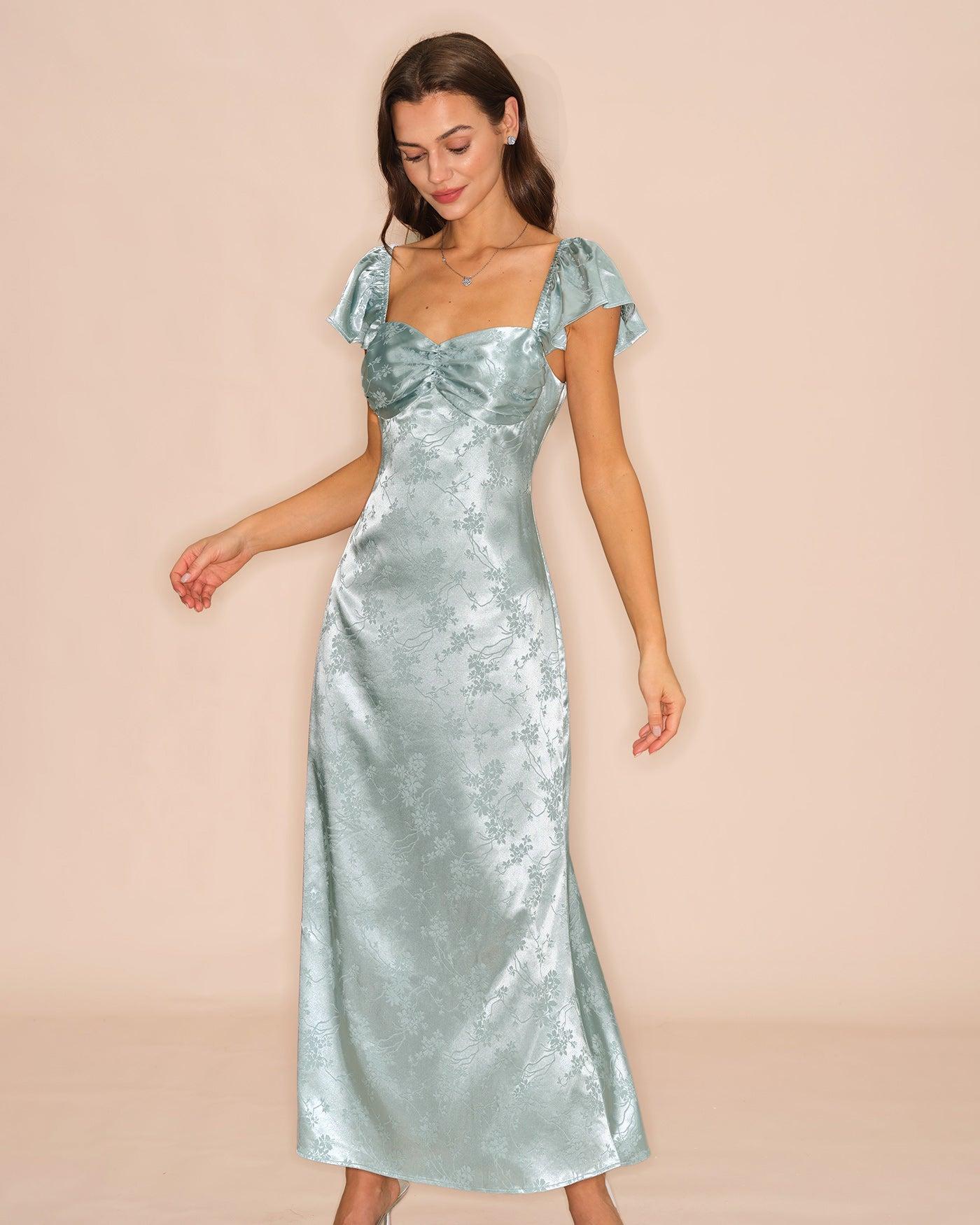 - Occasion: special occasion - Style: Formal - Season: Spring, Summer - Back Neckline: Square - Fabric Stretch: No Stretch - Waist: Natural Waisted - Sleeve Length: Short Sleeves - Sleeve Type: Circular Cap - Pattern Type: Floral - Embellishment: Ruched, Jacquard, Zipper - Neckline: Sweetheart Neck - Dress Type: Sheath dress - Silhouette: A-Line - Fabric: Polyester - Lining: Polyester - Material: Satin,Jacquard
