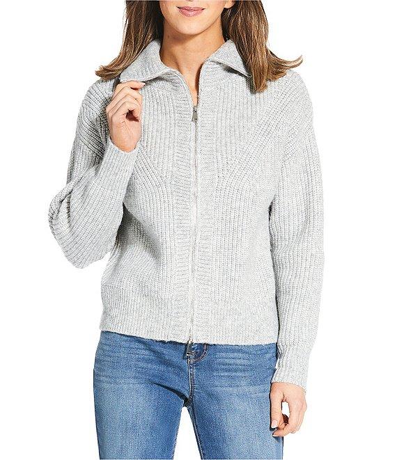 Greige Johnny Collar Long Sleeve Zip-Up Sweater Jacket