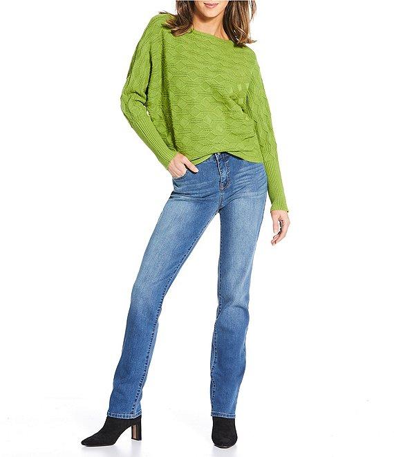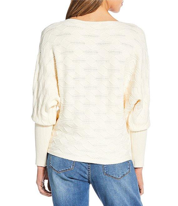 From Greige, this sweater features: Textured knit fabrication Boat neckline Long dolman sleeves with wide cuffs Straight hemline Pullover construction Rayon/polyester/nylon Machine wash/dry flat Imported.