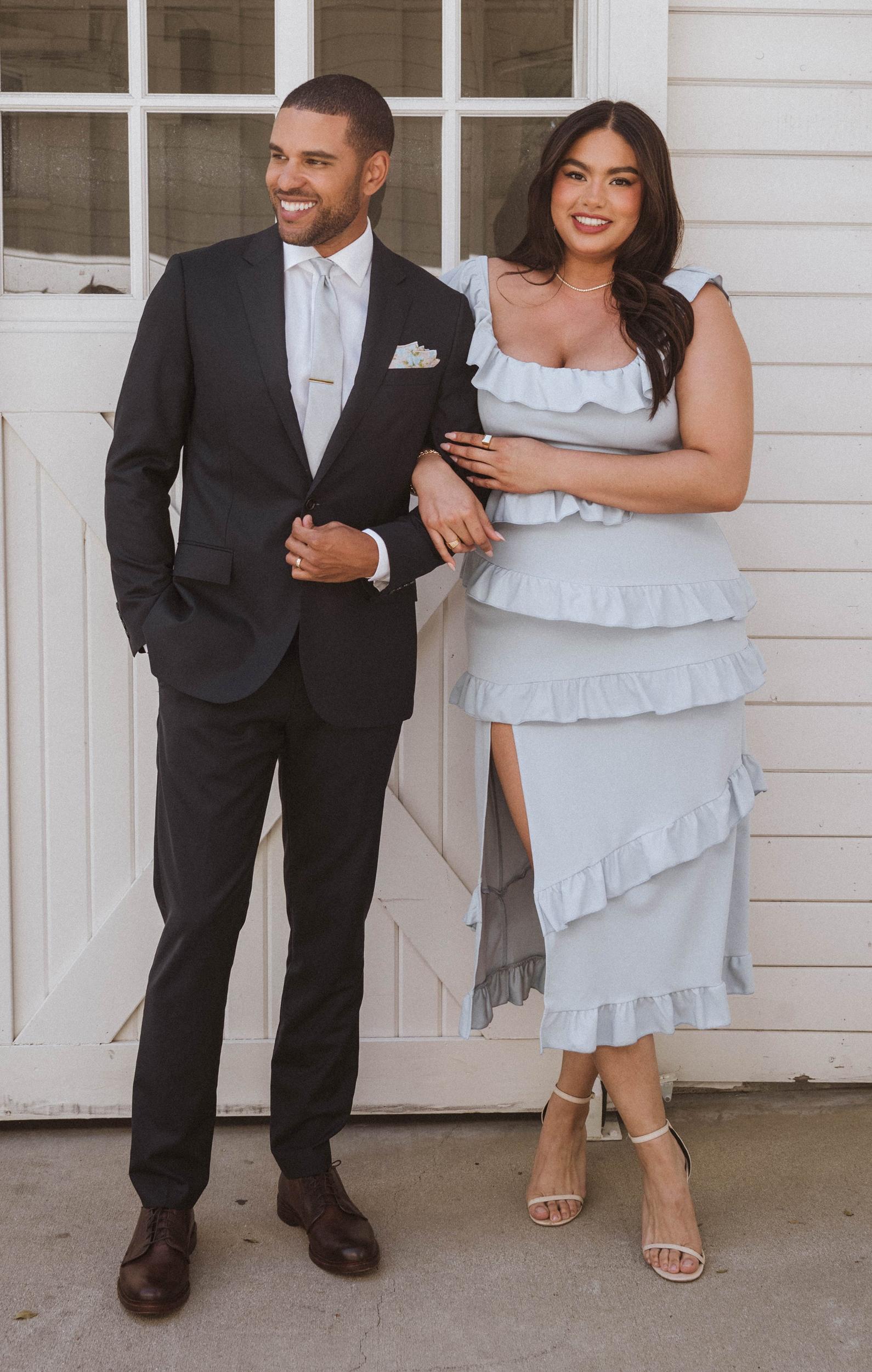 This fitted midi dress is as flattering as it is comfortable! Ruffled to perfection, this steel blue dress isn't your everyday midi! A square neckline and tank top straps lay the foundation for a simple silhouette, while dainty details including a slit to elevate it. Show up and show out at all this season's events.