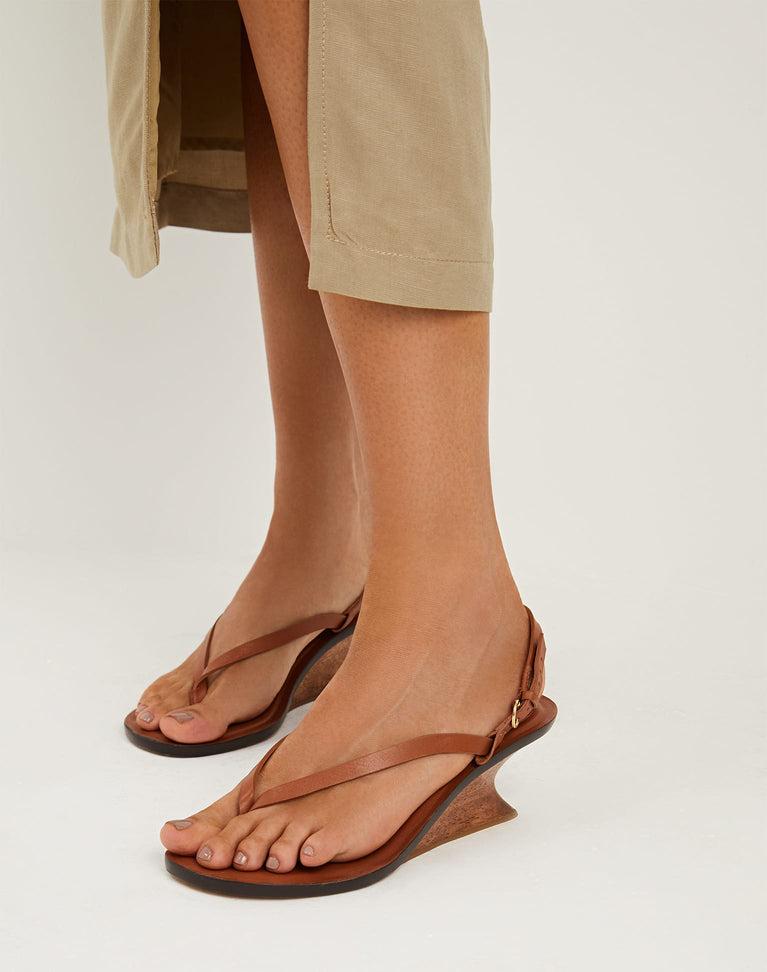 The ViX Greta Sandal effortlessly elevates any outfit with its open toe design, sculptural wooden wedge heel, leather straps, and secure side buckle closure. Pair the Greta Sandal with a flowy midi dress or tailored shorts for a chic, elevated look that transitions seamlessly from day to night. Features: Wedge sandal