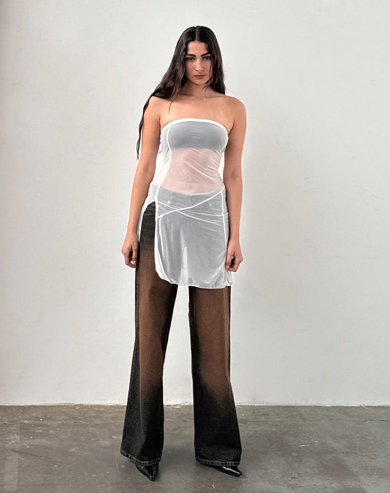Gretchen Bandeau Mini Dress in Sheer Cream Female