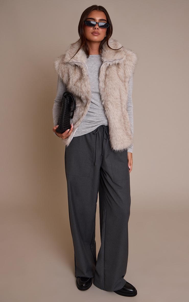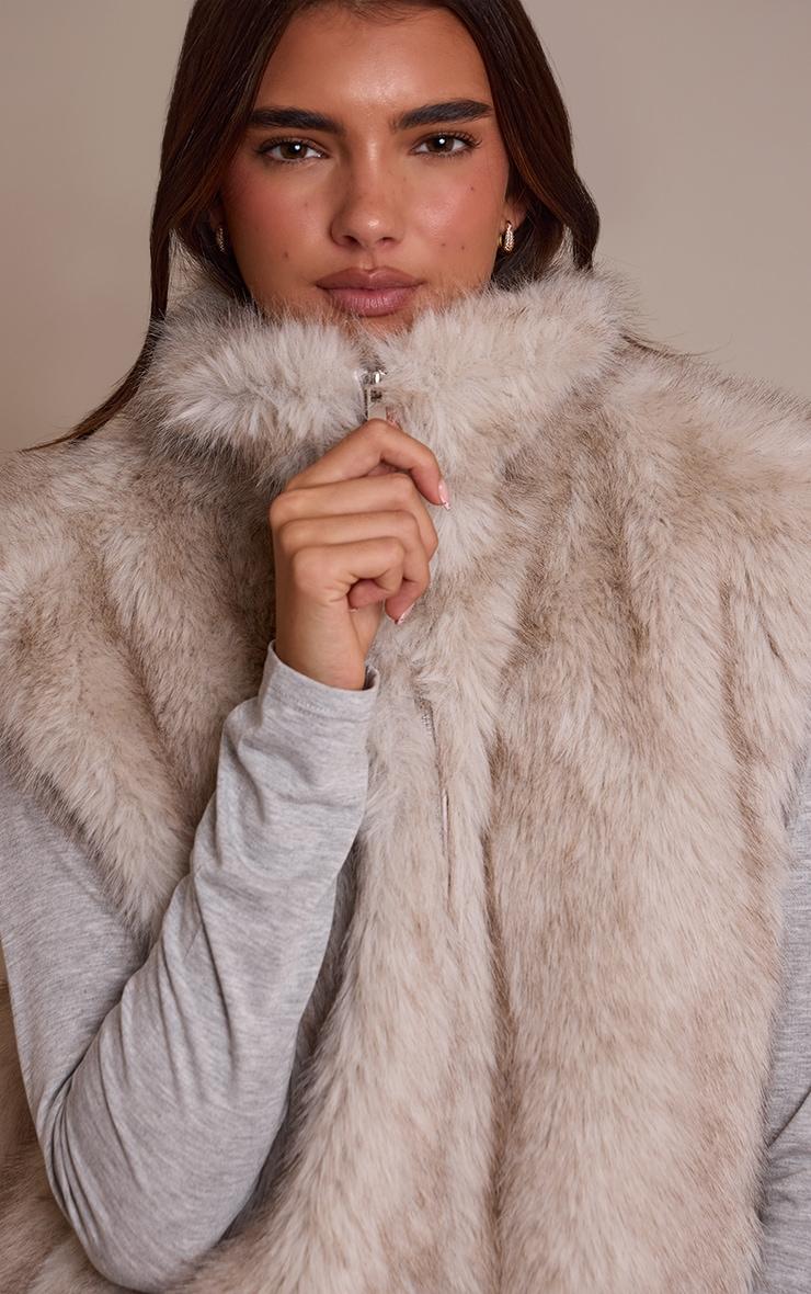 Making a statement is all in the layering. This grey faux fur vest instantly elevates your daily wardrobe, designed with a chic stand collar and a visible silver-tone zip fastening through its relaxed, sleeveless cut. It's the ultimate piece for adding an unexpected texture and dimension to your look, perfect for a day out. Layer yours over a fine-knit sweater and tailored pants, then complete the ensemble with ankle boots and a delicate pair of gold earrings for an effortlessly polished finish.Length approx 48.5cm/19inch (Based on sample size S)Model wears size SModel Height - 5ft 7inchp]:!mb-4inch>Category: OuterwearProduct type: VestColor: GreyMaterial: Faux FurOccasion: Day