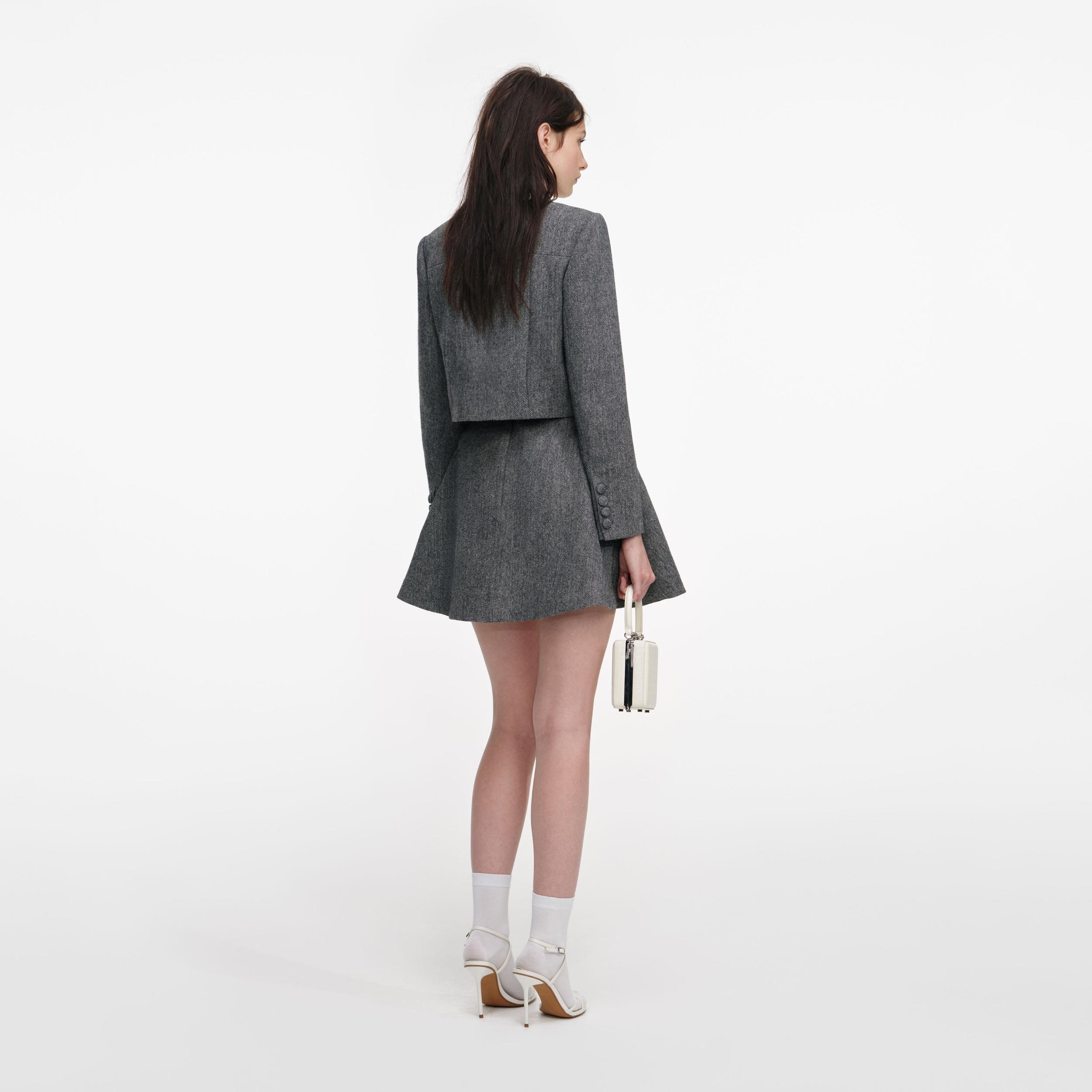 Styled with flair, this herringbone wool jacket comes with its own scarf detail around the neckline. A contrast collar adds preppy detail – pair with our matching skirt for meetings that matter.True to sizeThis style has minimal stretchButton closure down frontBoxy fitMatching skirt availableModel is 5ft10/178cm and wears a size UK 6