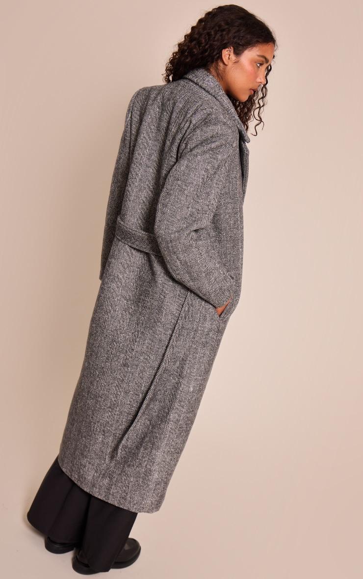 Wrap up in style with the grey herringbone tie waist maxi coat. Designed in a textured herringbone grey fabric, it features a maxi length and self-tie waist belt for a sleek fit. Style with knitwear and leather boots for refined winter dressing.Length approx 124.5cm/49inch (Based on sample size S)Model wears size SModel Height - 5ft 10inchp]:!mb-4inch>Brand: PrettyLittleThingCategory: OuterwearProduct type: Wool Look CoatColor: GreyMaterial: Faux WoolOccasion: Day
