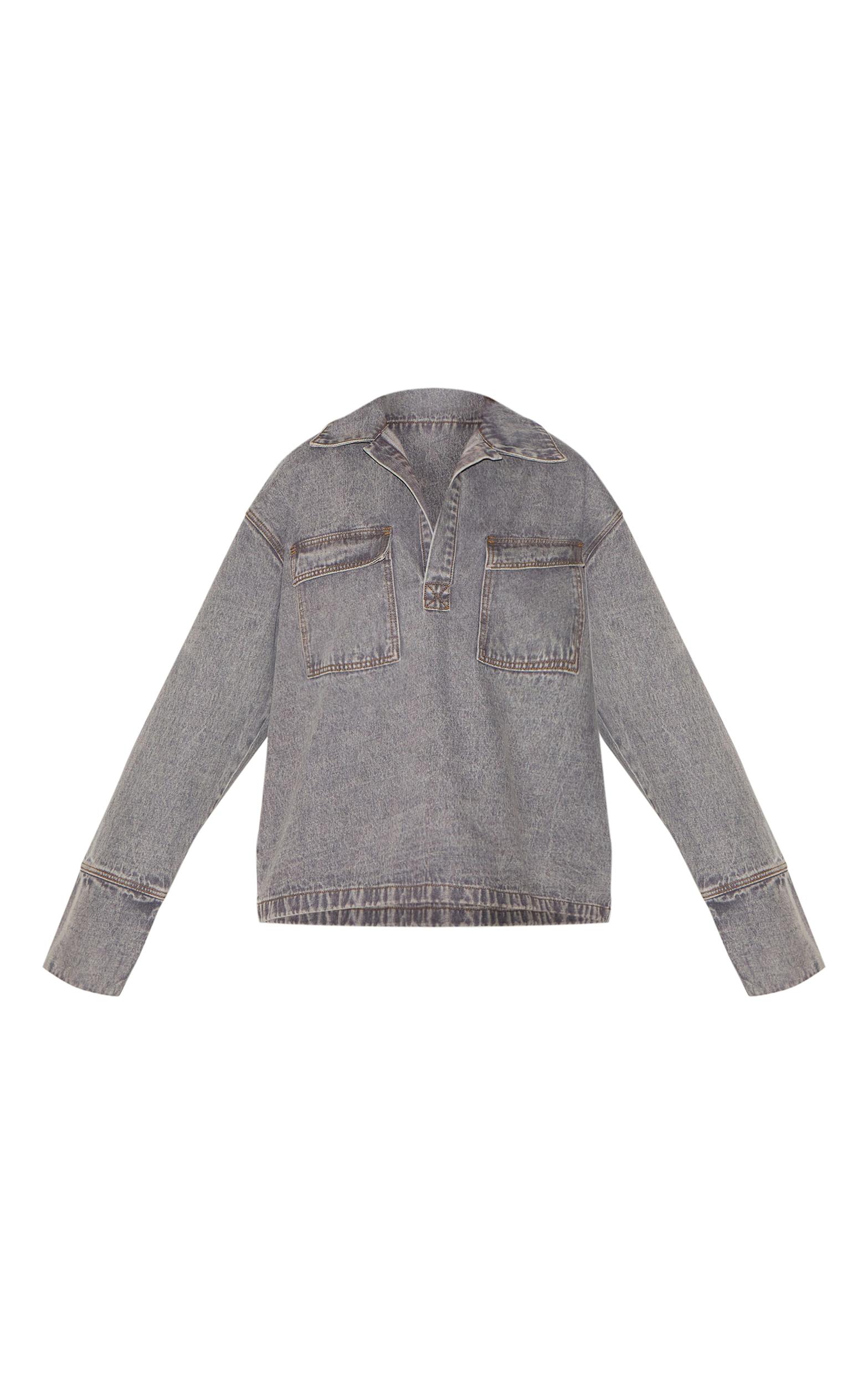 Brought to you in a classic grey denim material with a stylish slouchy fit. Make a statement with this grey long sleeve slouchy denim rugby shirt by pairing it with the matching grey slouchy wide leg style jeans and some sneakers for a stylish finish. Length approx 48.5cm/19inch (Based on sample size US 4)Model wears size UK 8/ EU 36/ AUS 8/ US 4Model Height - 5ft 7inchp]:!mb-4inch>Brand: PrettyLittleThingCategory: DenimProduct type: Denim ShirtColor: GreyMaterial: Rigid DenimNeckline: V NeckSleeves: LongOccasion: Day