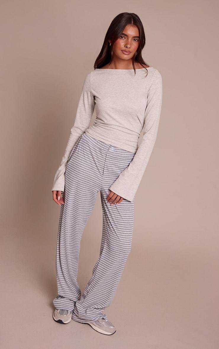 Own the understated aesthetic with a piece that defines casual elegance. The grey marl soft cotton boat neck flared long sleeve top presents a confident, off-the-shoulder silhouette, framed by an artful gathered detail at the shoulder that draws the eye. Its elongated sleeves feature discreet thumbholes, adding a modern edge to the refined boat neckline. Pair this versatile top with high-waisted tailored pants and sleek ankle boots for a refined day ensemble, or opt for a midi skirt and some delicate platform heels to transition seamlessly into an evening edit. Complete the look with a minimal gold ring to capture that knowing, chic sensibility.Length approx 48.5cm/19inch (Based on sample size US 4)Model wears size UK 8/ EU 36/ AUS 8/ US 4Model Height - 5ft 9inchp]:!mb-4inch>Brand: PrettyLittleThingCategory: TopsProduct type: Fitted T-ShirtColor: Grey MarlMaterial: Cotton JerseyOccasion: Day