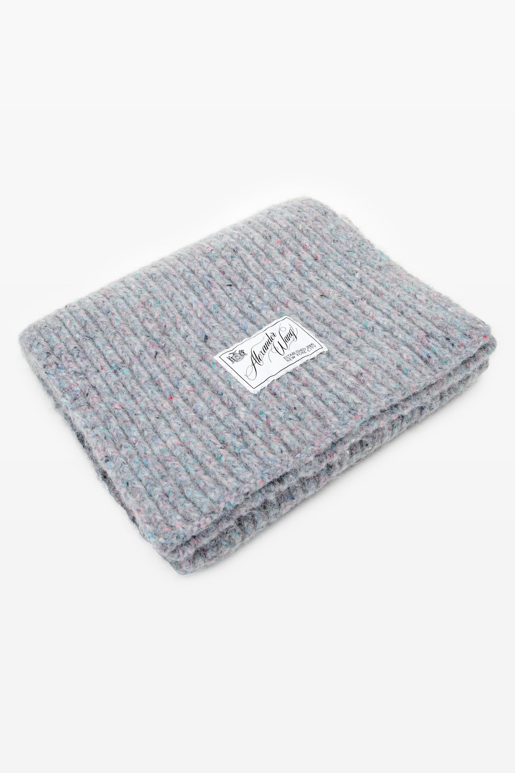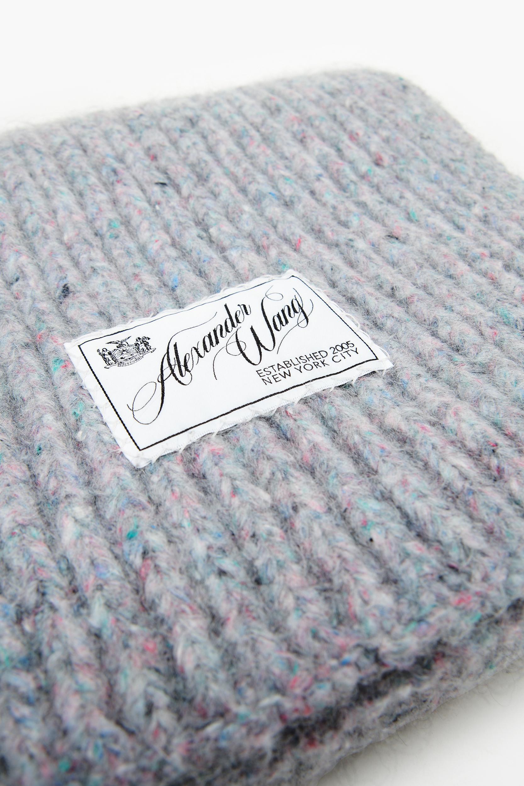 Ribbed knit scarf in grey multi mouliné yarn, finished with a branded tailoring label appliquéd at the hem. body composition: 38%wool/21%cotton/18%polyamide/12%mohair/9%polyester/2%viscose made in Vietnam 1KC4259034080