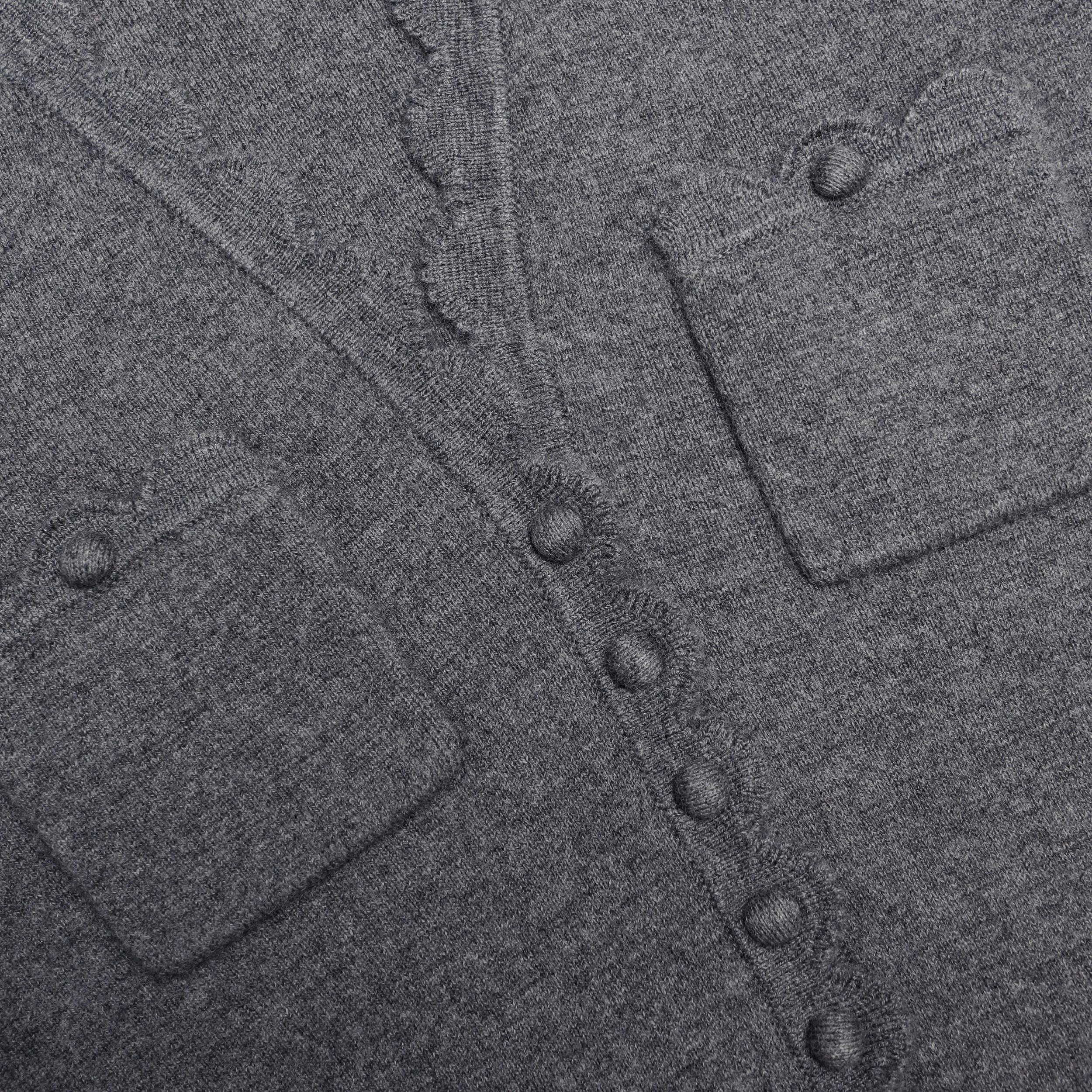 Soft and sculpted, this grey midi dress is cut from cotton cashmere for an irresistible touch. An elegant peplum waist and scalloped trims accentuate the form above its polished pencil skirt.True to sizeFabric has stretchButton closure down frontPeplum waistRemovable shoulder padsModel is 5ft10/178cm and wears a size S