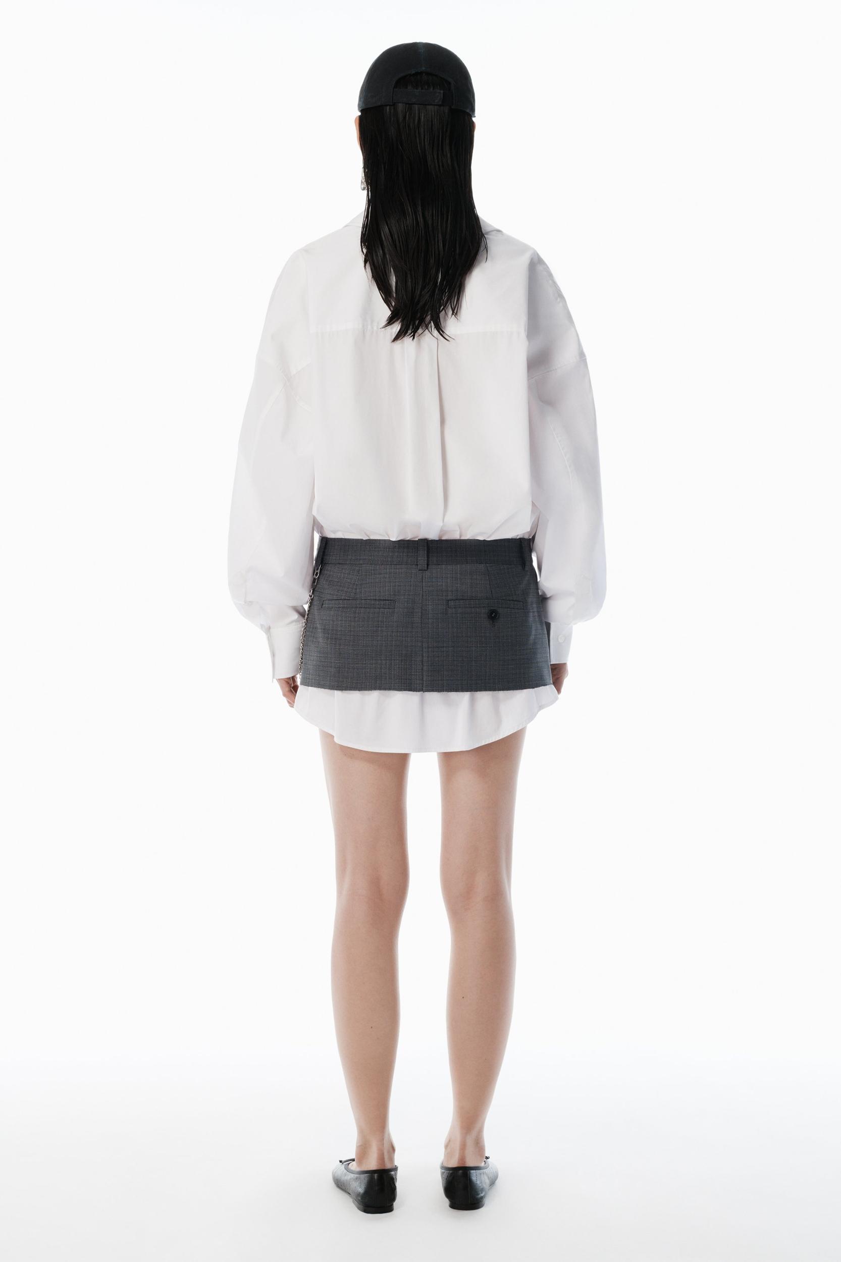 Designed to resemble an oversized shirt with a skirt, this pre-styled shirtdress in white and dark grey features classic shirting details, including a chest pocket, placket, and a box pleat at the back, all accentuated by curved sleeves.