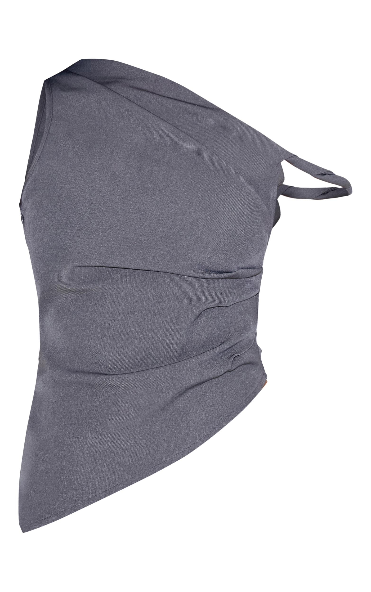 Introducing this grey woven asymmetric hem ruched long top. Made from grey woven material, this top has an asymmetric hemline, flattering ruching and a one shoulder design. Wear it with white pants, strappy flat sandals and subtle earrings for an elevated look.Length approx 48.5cm/19inch (Based on sample size US 4)Model wears size UK 8/ EU 36/ AUS 8/ US 4Model Height - 5ft 7inchp]:!mb-4inch>Category: TopsProduct type: Vest TopColor: GreyMaterial: Woven CrepeDesign: PlainNeckline: AsymmetricSleeves: SleevelessOccasion: Evening