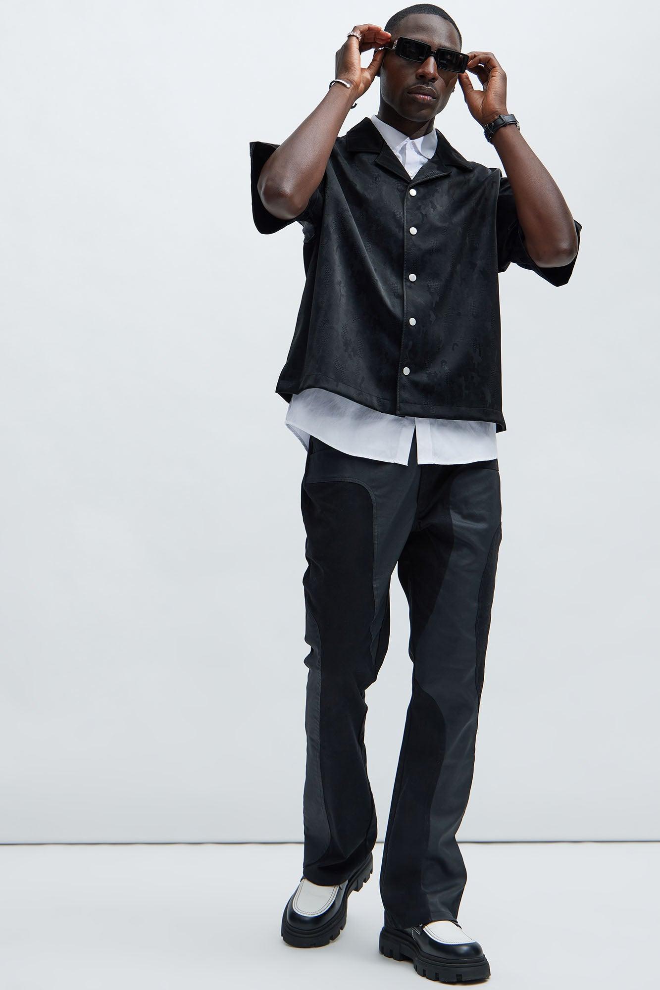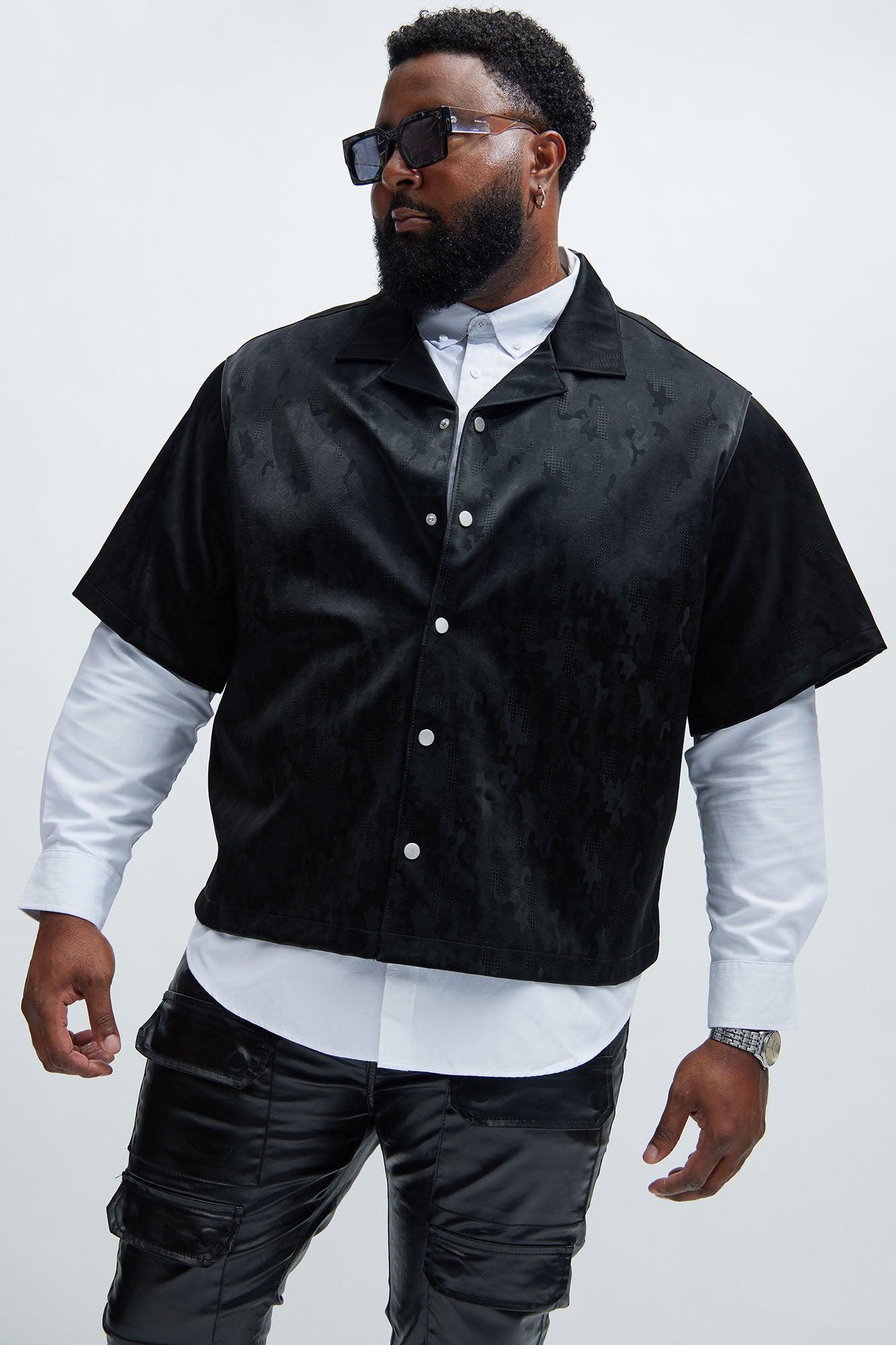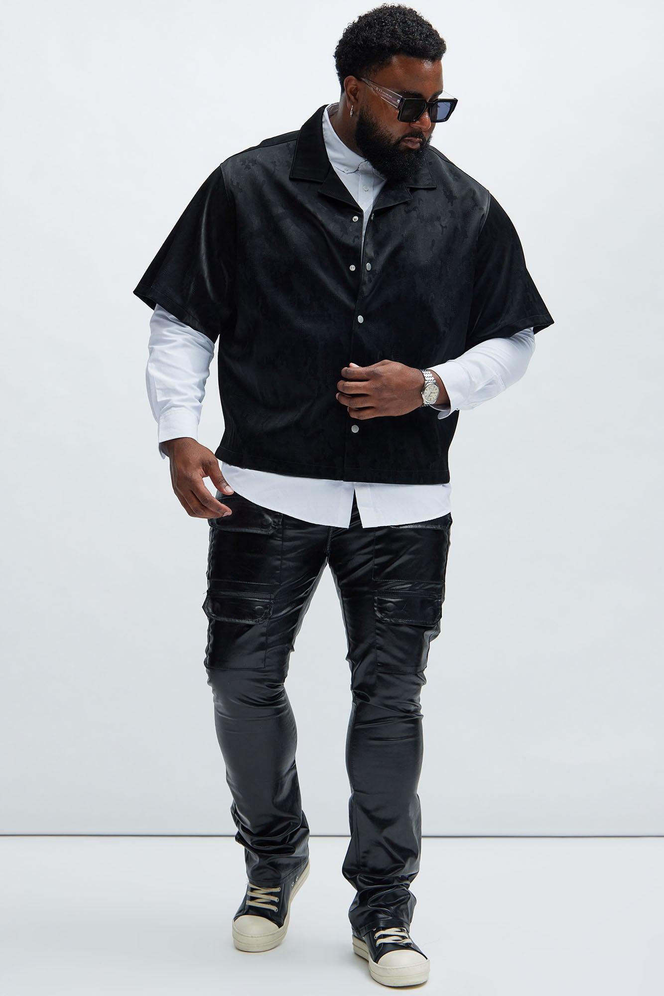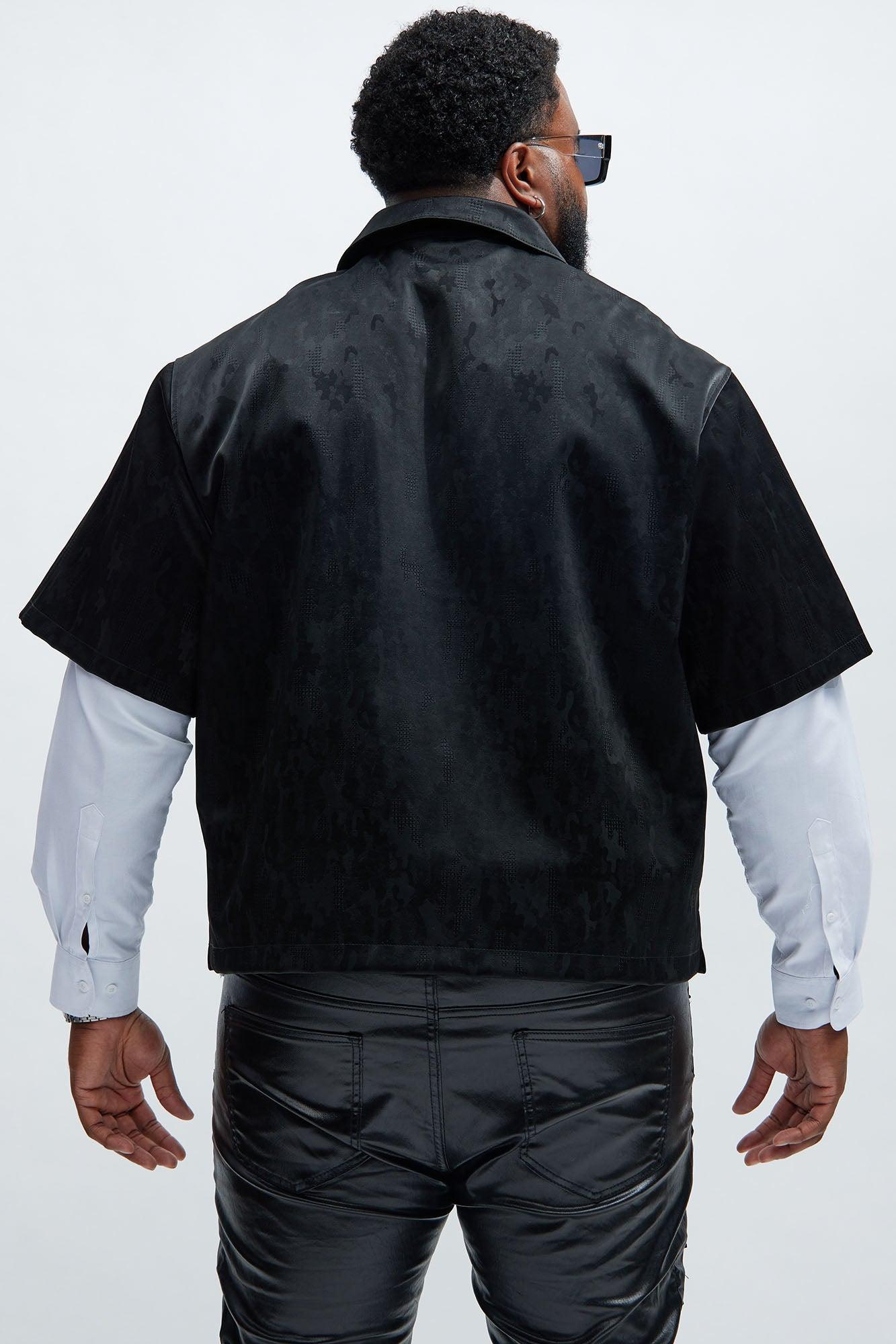 Available In Black. Front Button Closure Short Sleeve Bottom Side Slit Shell/Coating: 100% Polyurethane Base Fabric: 50% Polyester 50% Viscose Imported California Proposition 65 WARNING: Cancer and Reproductive Harm - www.P65Warnings.ca.gov.