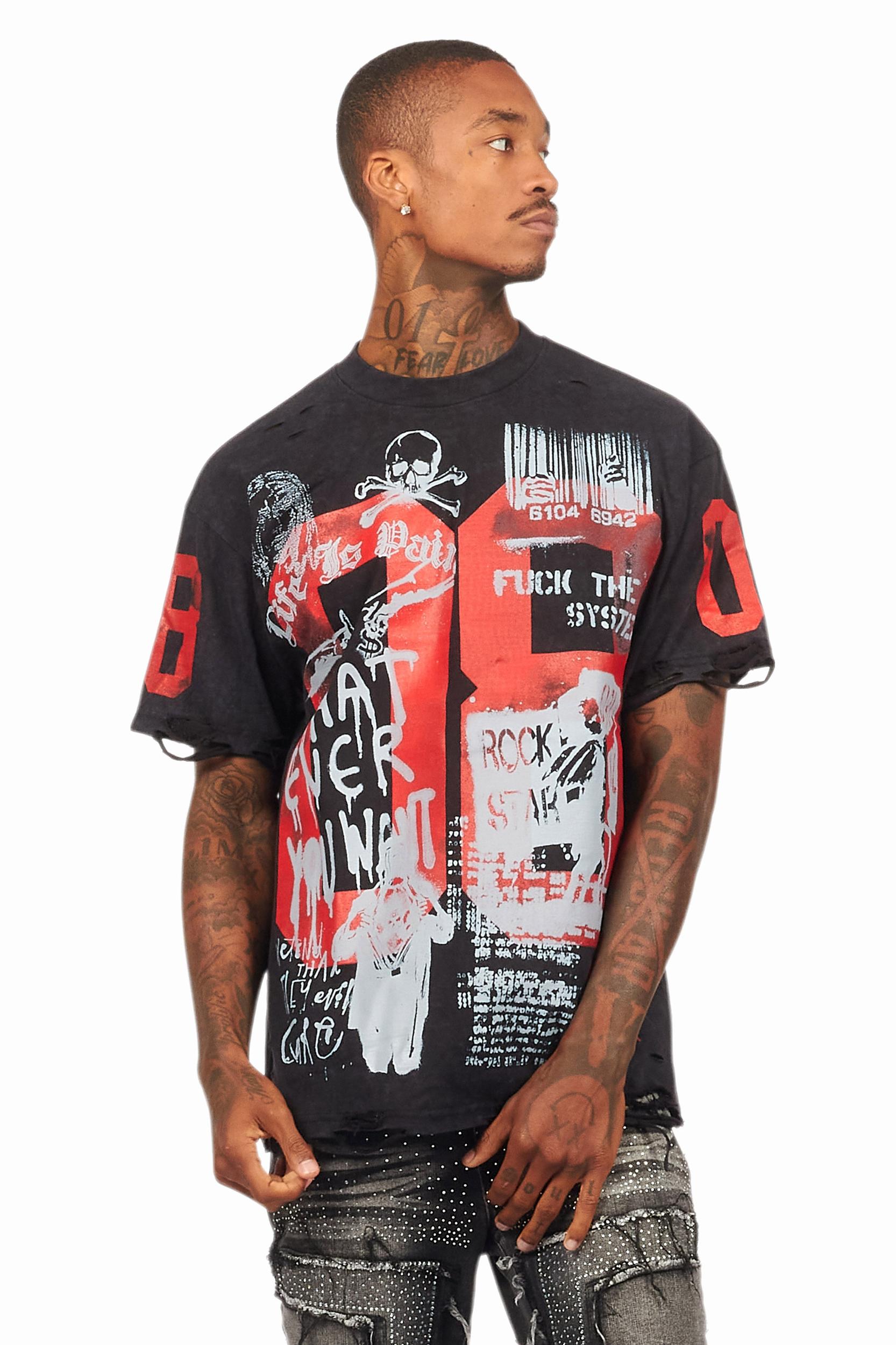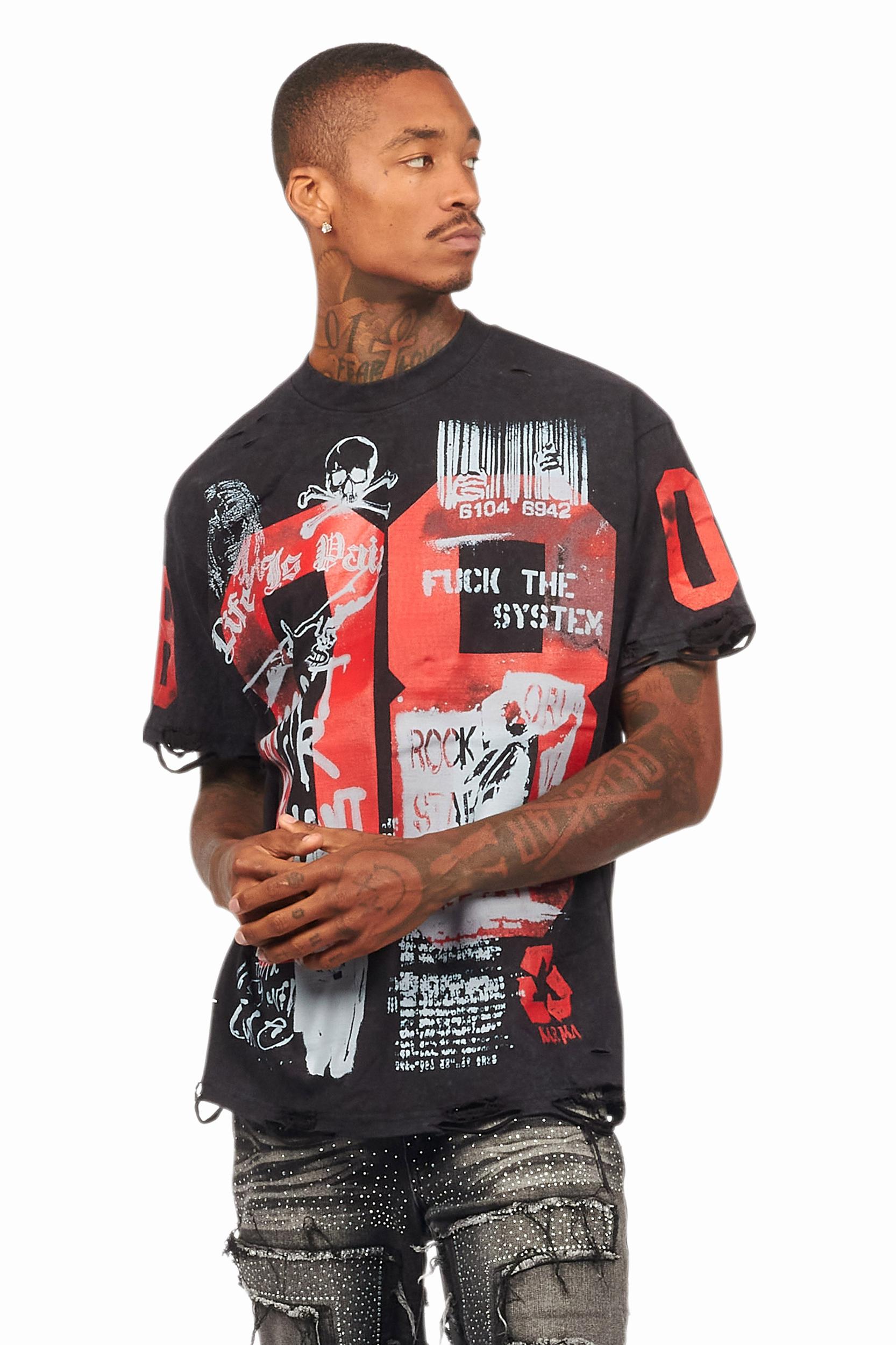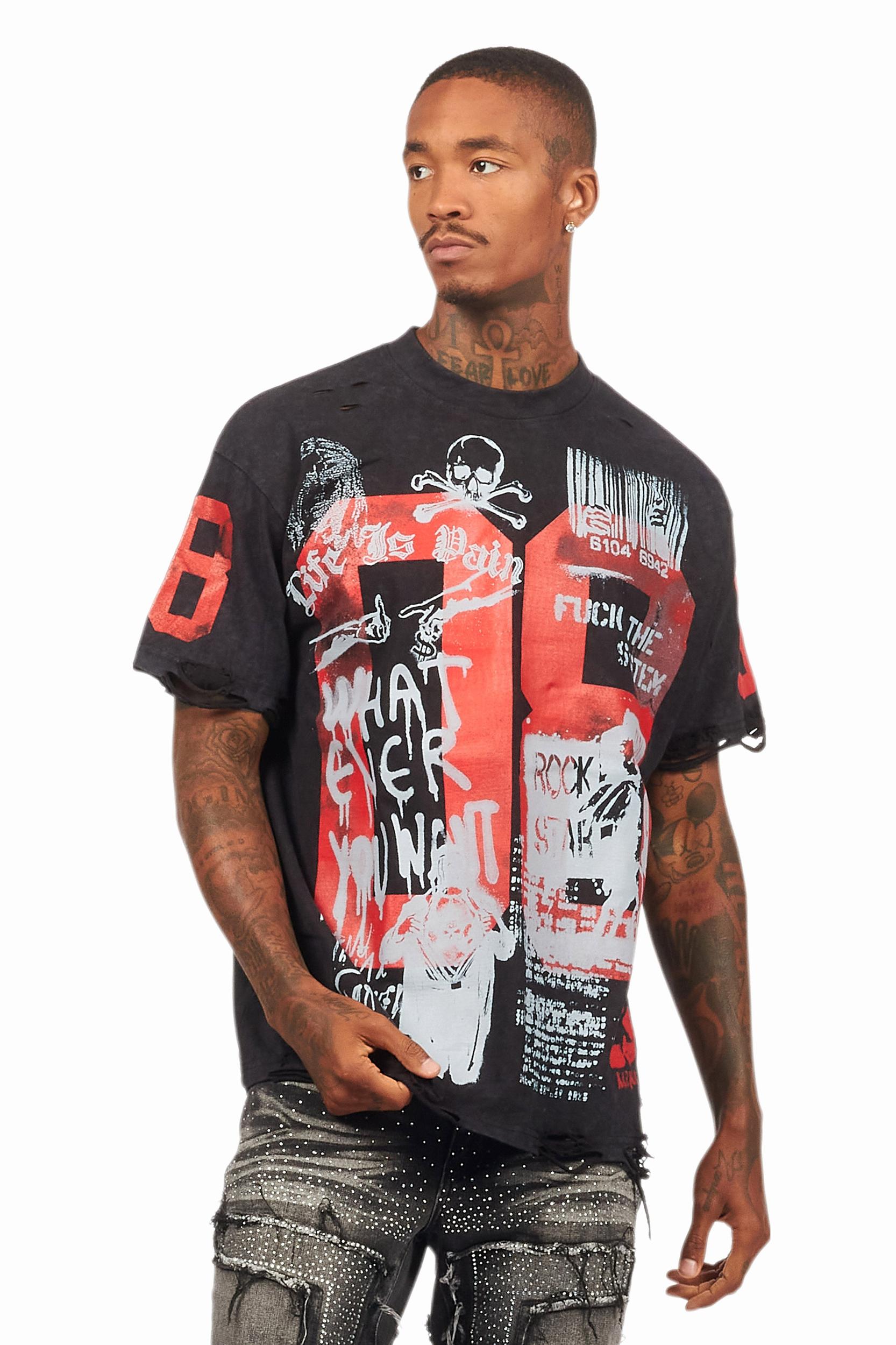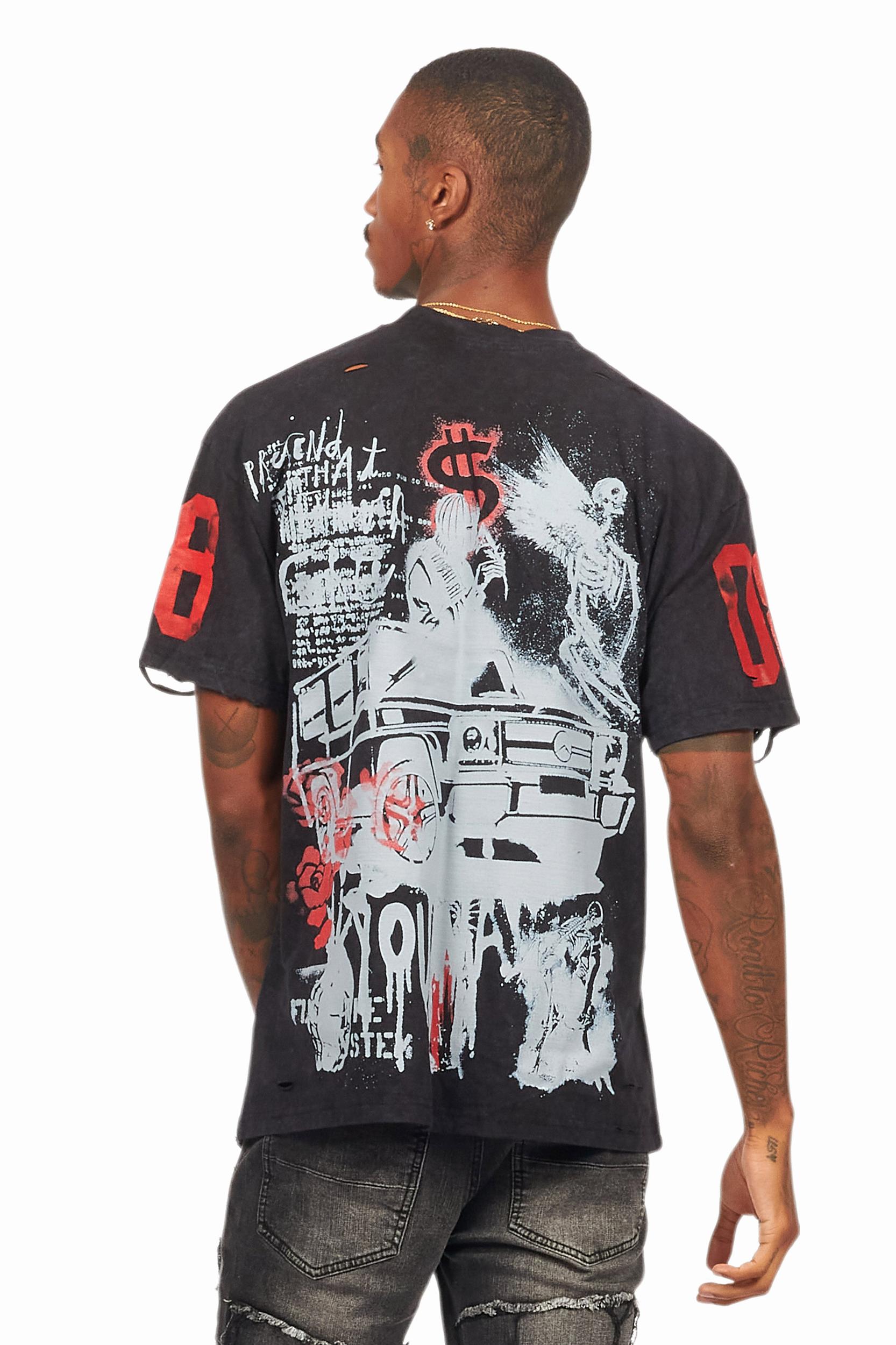 Grill Vintage Black Graphic Oversized T-Shirt Male