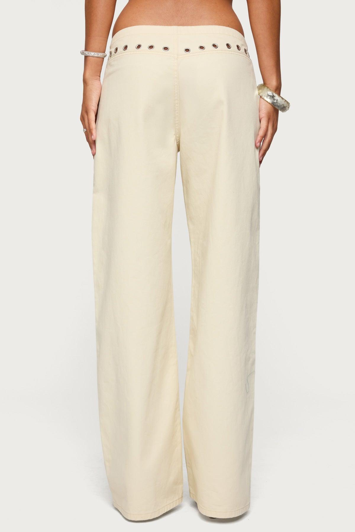 Jeans Low rise waist Tie waist Grommet detailing Denim fabric 100% Cotton Model wears size S Inseam of size S (in): 31.1 Model height is 5'8 Item care: Machine wash at maximum 30ºC, do not bleach, tumble dry low, iron at a maximum of 110ºC, do not dry clean
