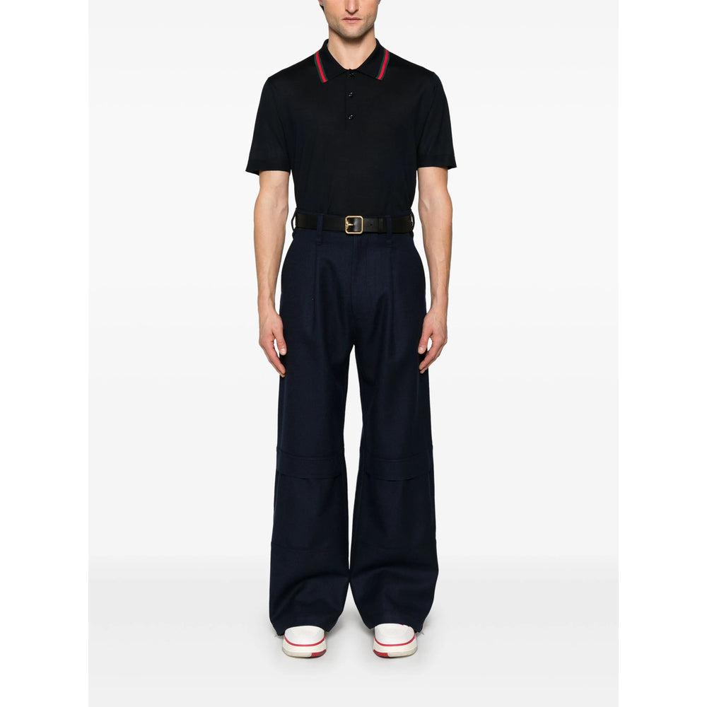 Shop Gucci Classic Polo T-shirt In Blue Wool In Black from 800+ stores, starting at $750. Gucci presents this classic polo t-shirt, a striking wardrobe essential crafted from 100% premium wool. The design features a soft collar, buttoned placket, and sophisticated contrasting stripes, ensuring a comfortable fit and tailored silhouette for effortless versatility across casual and smart casual occasions.- Brand: Gucci- Product Type: T-Shirt- Gender: Men- Material: 100% Wool- Color: Blue