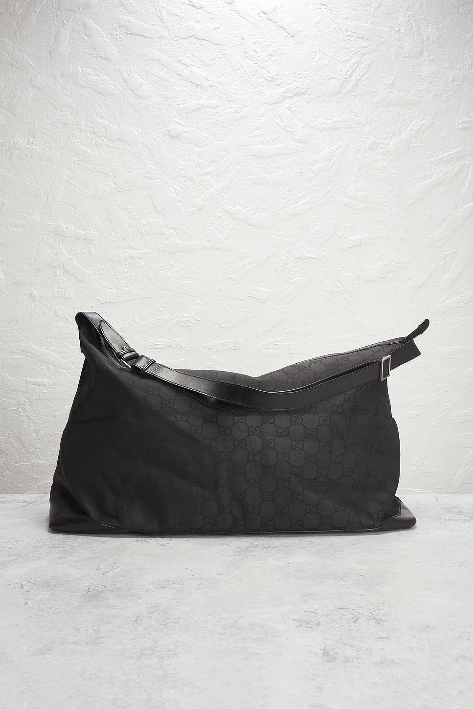Photos are of the actual item.. Light rubbing to corners. Light scratching to exterior hardware. Light wear throughout. Original brand box, dustbag, authenticity card and hangtag not included. Black gg canvas with black calfskin leather exterior and silver-tone hardware and nylon lining. Made in Italy. Top zipper closure. One main compartment. One interior zipper pocket. Measures approx 23" W x 14" H x 11" DShoulder strap with a 8" drop. Our Style No. FNEF-WY5759. Manufacturer Style No. 10715795.