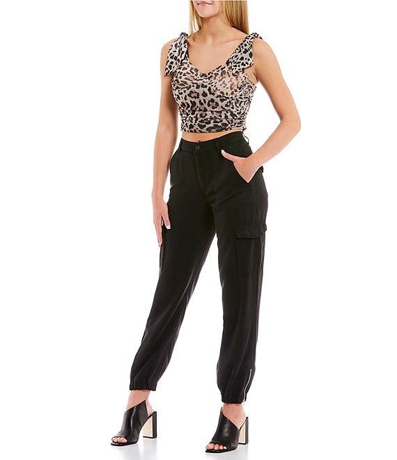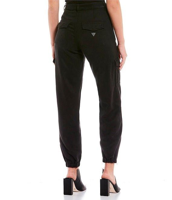 From Guess, these pants features: High-rise Front button/zip closure Belt loops Side seam pockets Cargo pockets Ankle length Lyocell Hand wash Imported.