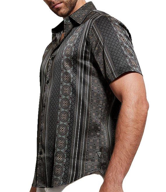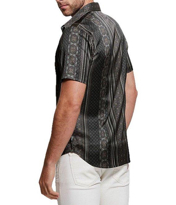 Guess Charm Mosaic Stripe Short Sleeve Woven Shirt