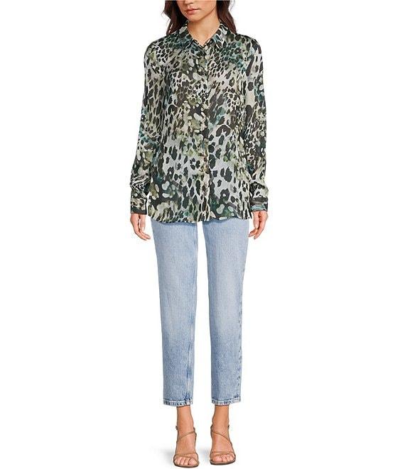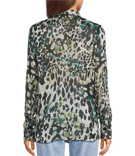 Guess Clouis Long Sleeve Leopard Print Crinkled Chiffon Shirt