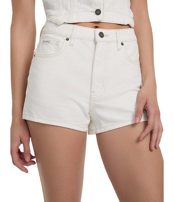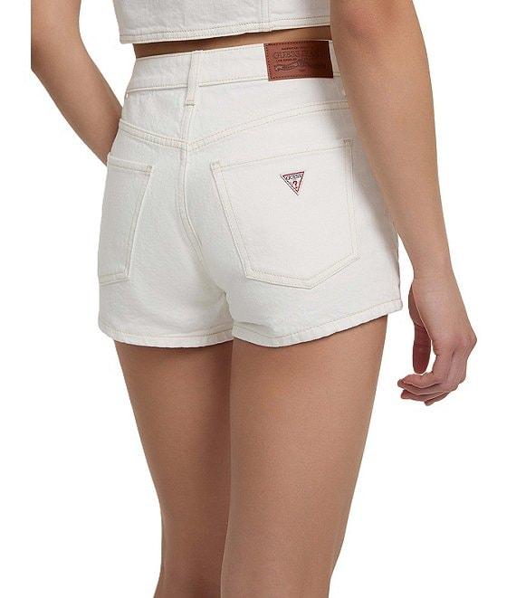 From Guess, these shorts feature: High rise Five-pocket construction Logo icon Regular fit Zip/button-front closure Belt loops Stretch-denim mom shorts Approx. 4" inseam Regenagri cotton/regular cotton/elastane/spandex Machine wash/tumble dry Imported.