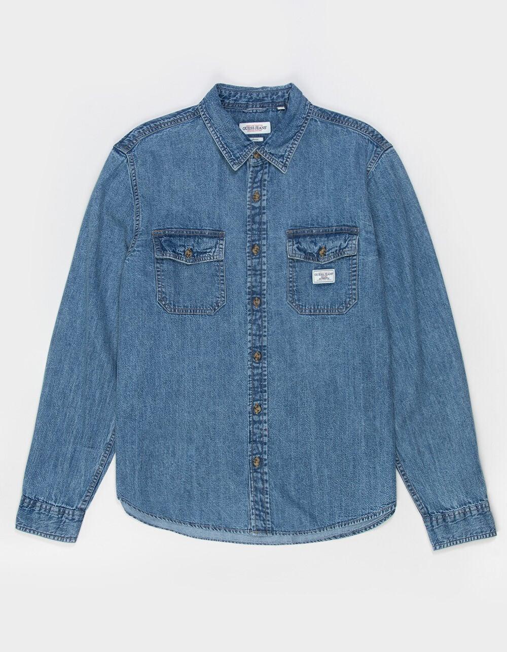 GUESS JEANS Regular Mens Long Sleeve Denim Shirt - MEDIUM WASH