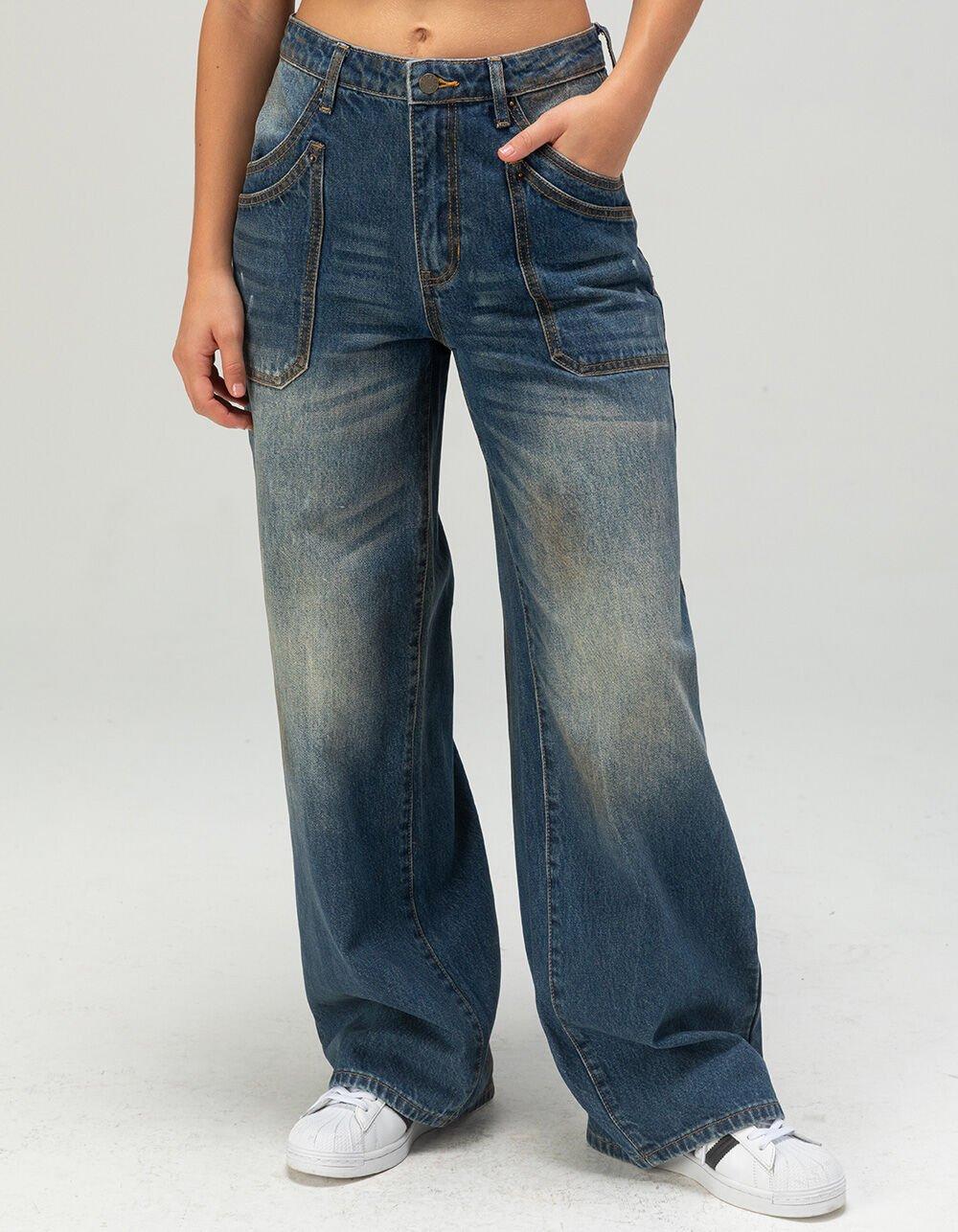 GUESS ORIGINALS Double Wide Leg Womens Jeans - DARK STONE