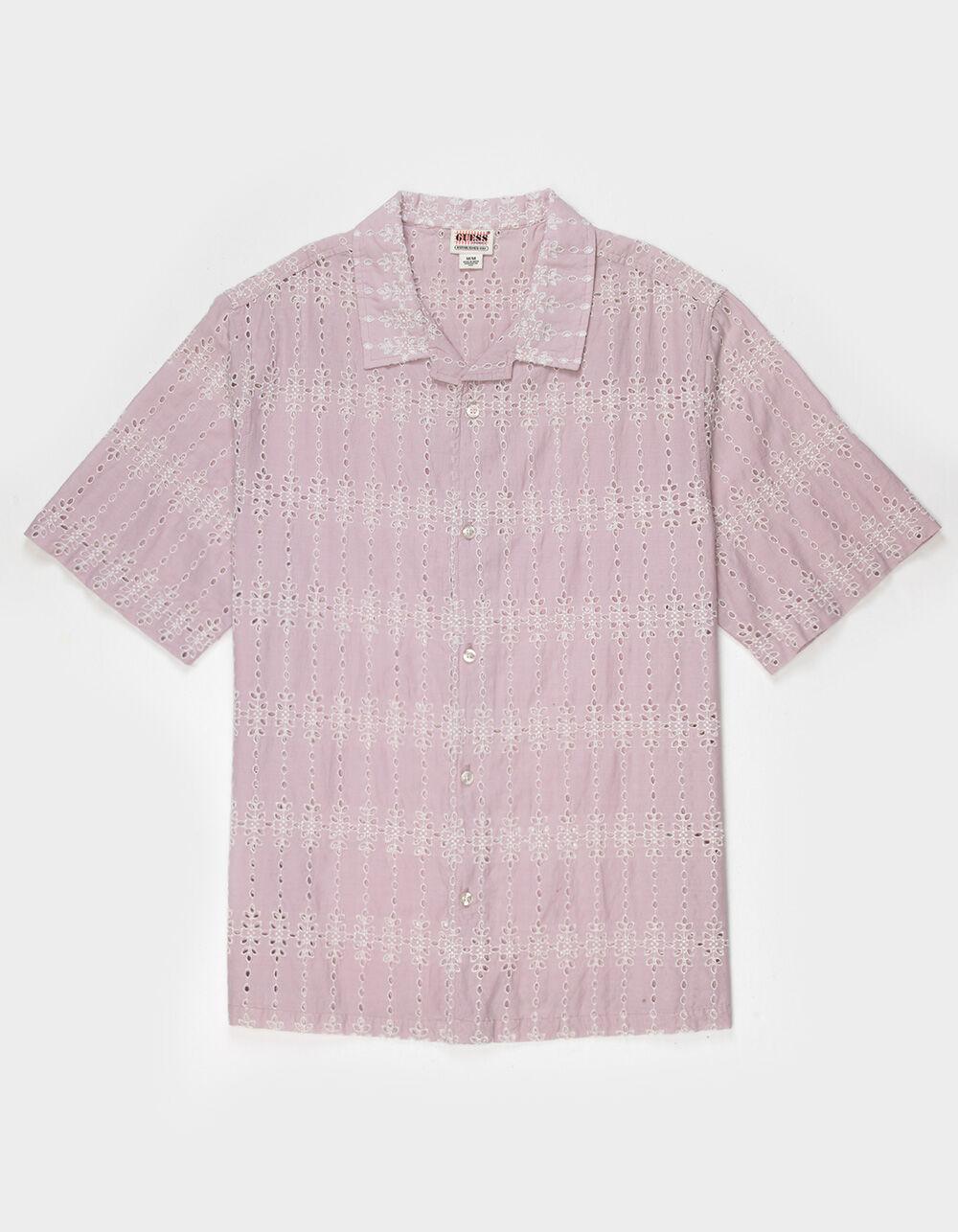 GUESS ORIGINALS Mens Embroidered Camp Shirt - LILAC