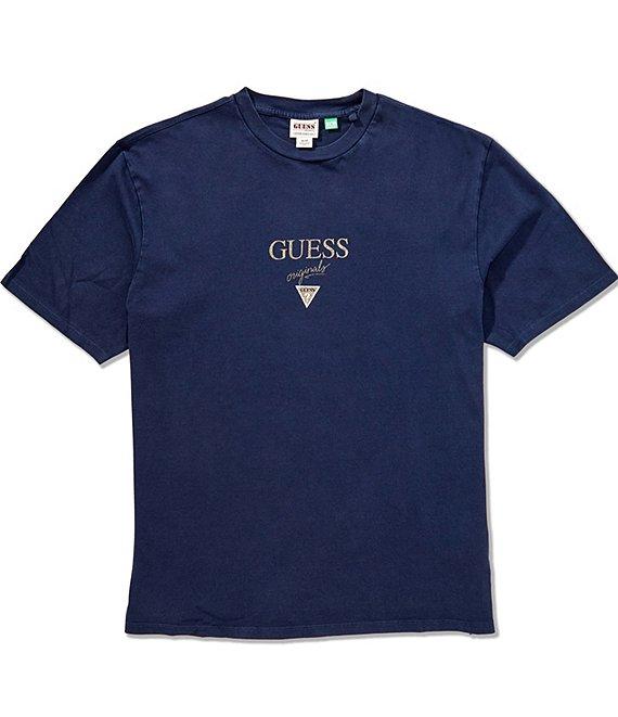 From Guess, this t-shirt features: Crew neck Long sleeves Logo printing on the chest Straight Hem Pullover construction Organic heavy jersey cotton Machine wash/tumble dry Imported.