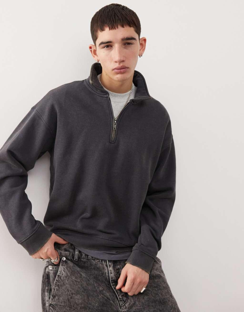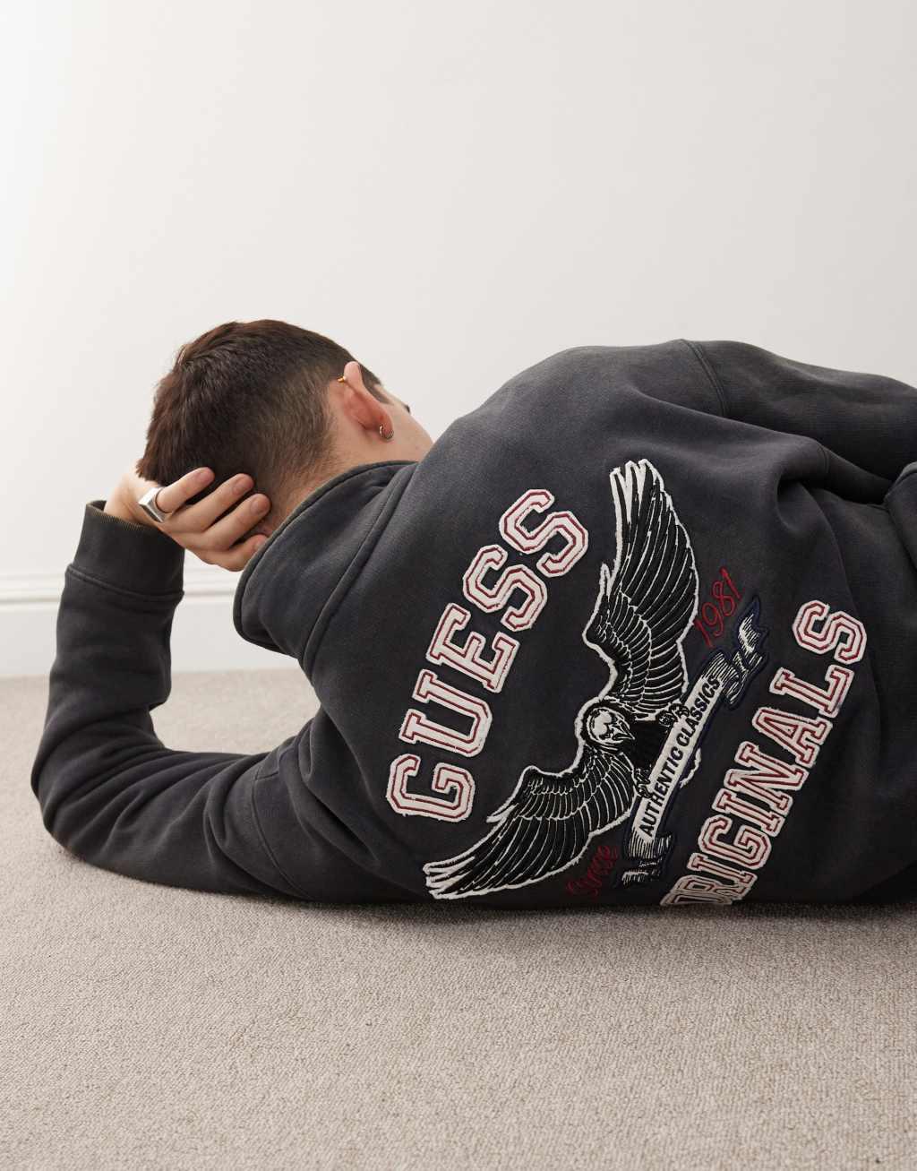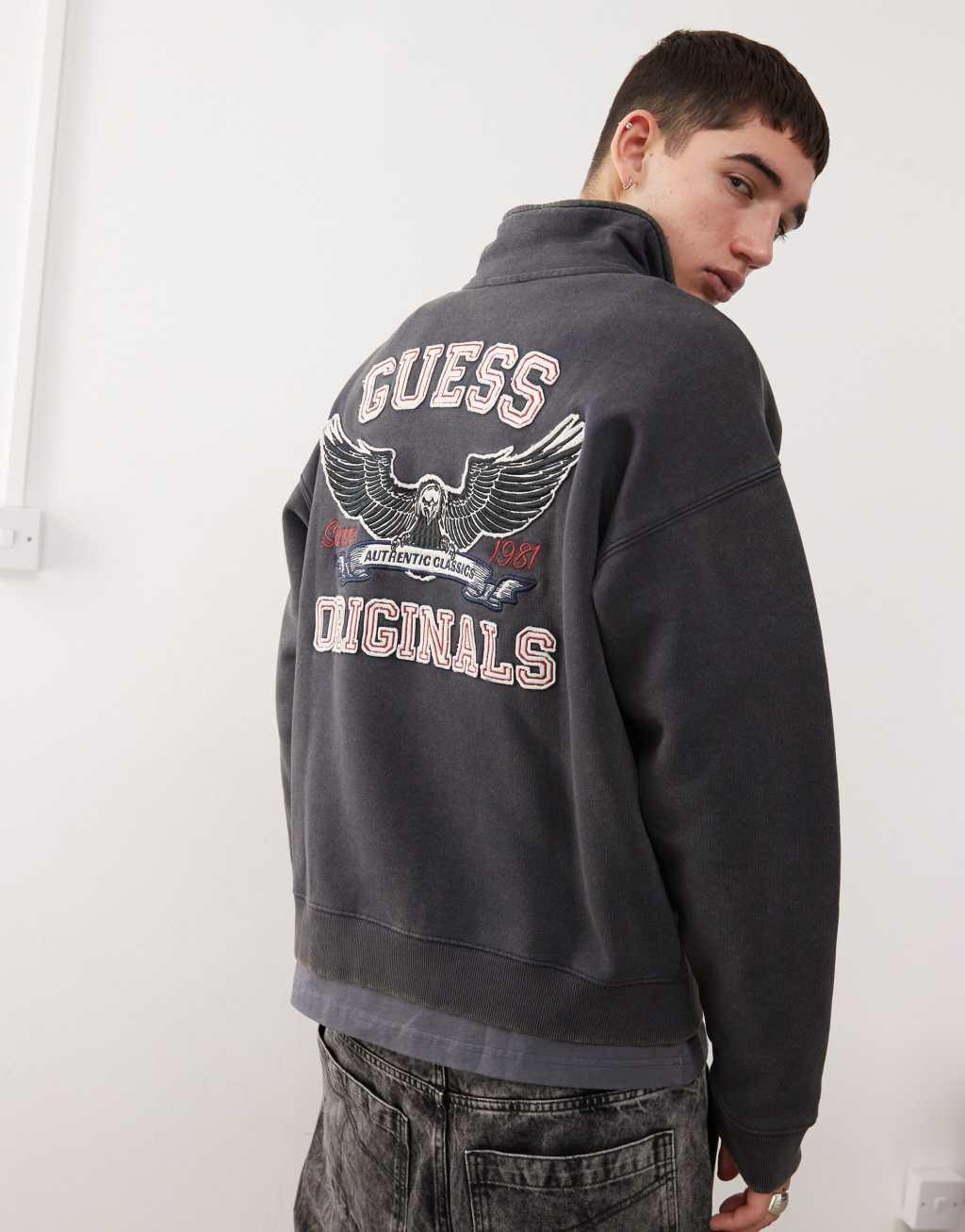 Guess Originals washed half zip sweatshirt in black with back embroidery
