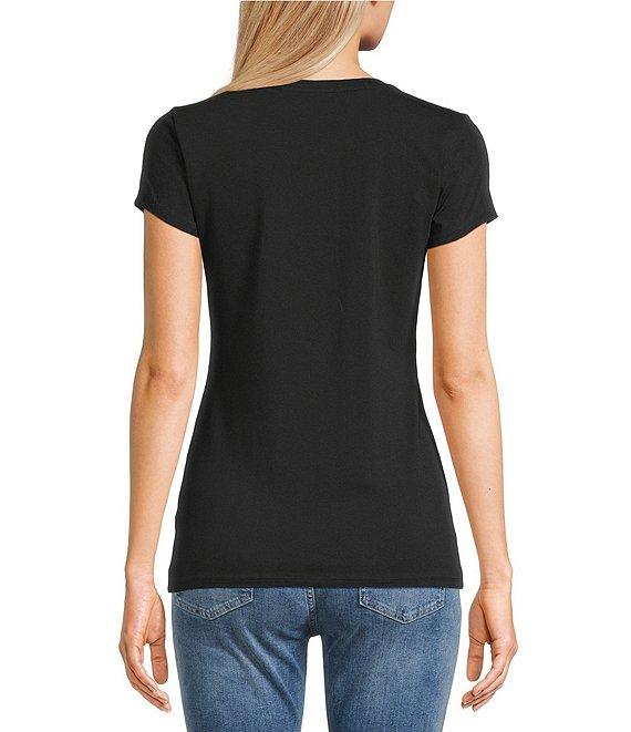 From Guess, this top features: Crew neck Short sleeves Graphic logo Pullover styling Organic stream stretch jersey 180 fabric Cotton/elastane/spandex Machine wash/tumble dry Imported.