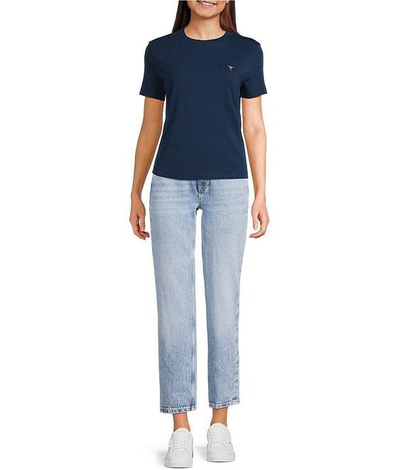 From Guess, this t-shirt features: Round neckline Short sleeves Subtle triangular logo detail on the chest for a modern finish Pullover styling Clean, fitted silhouette Organic cotton Machine wash/tumble dry Imported.