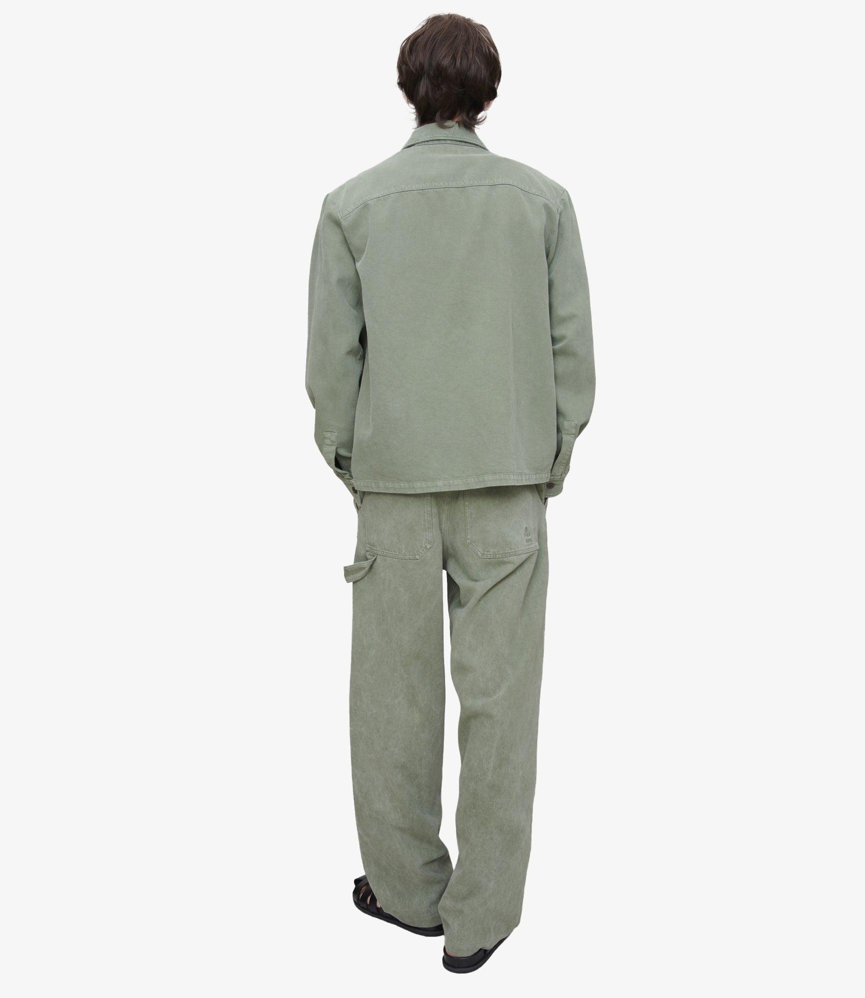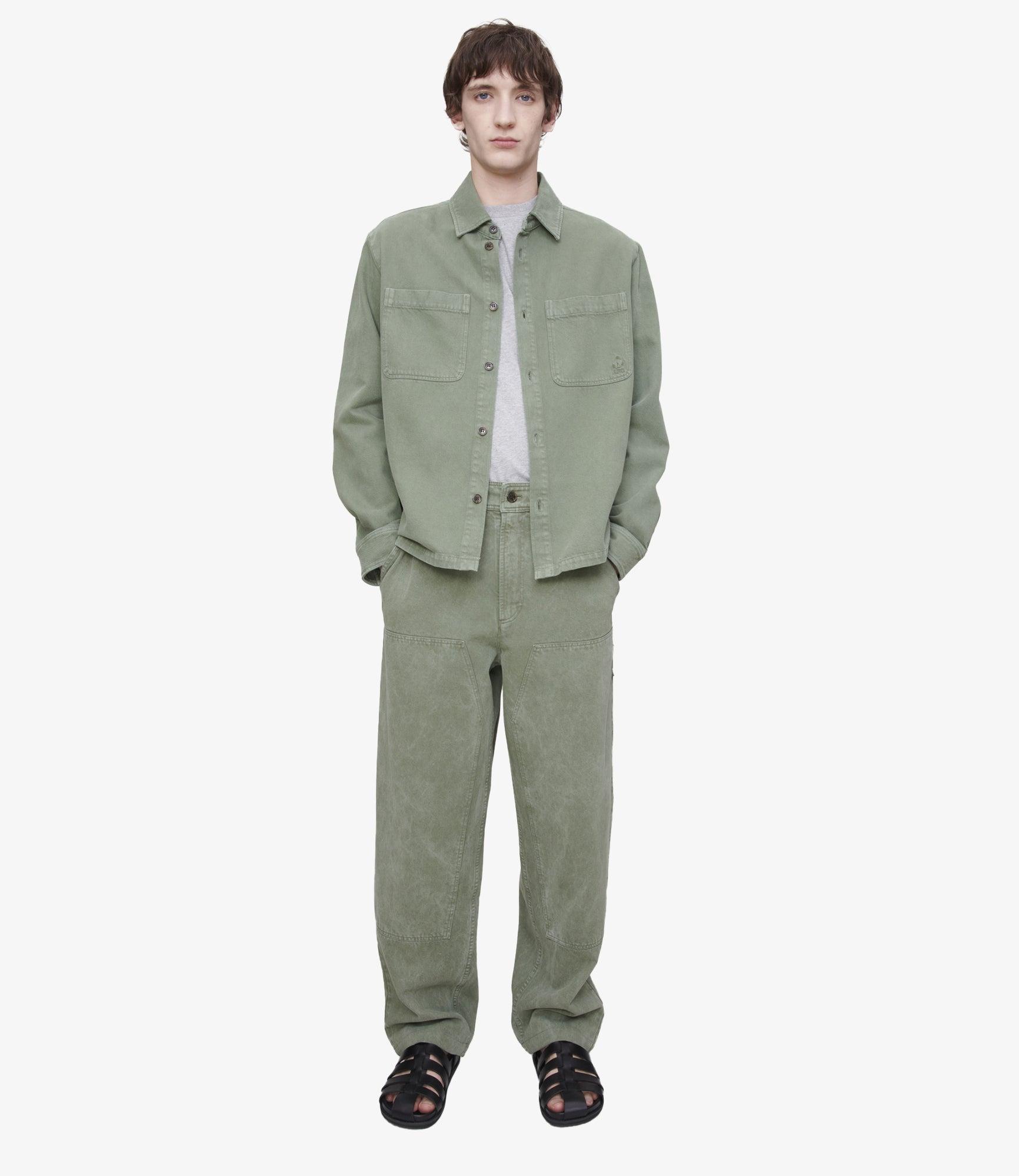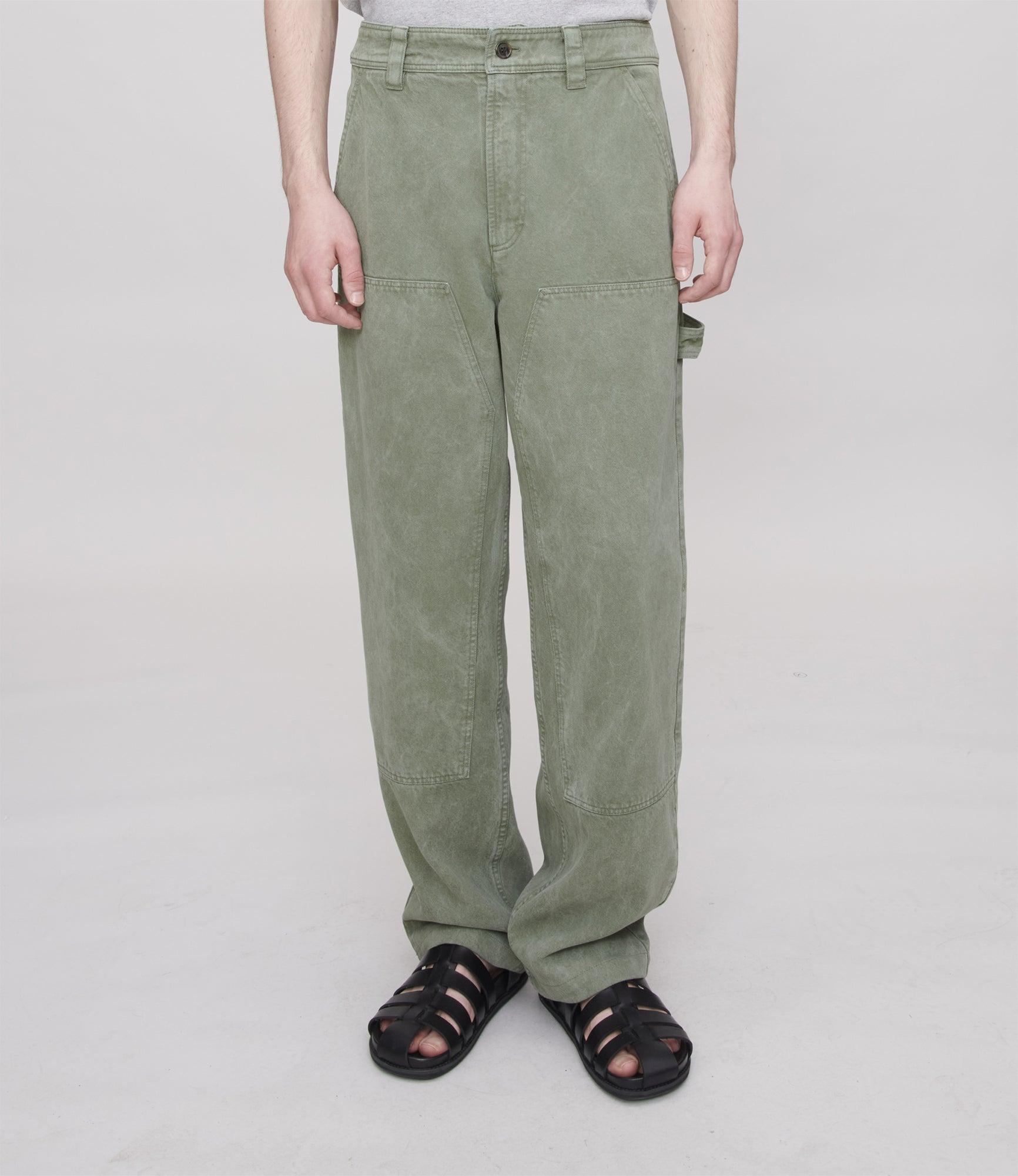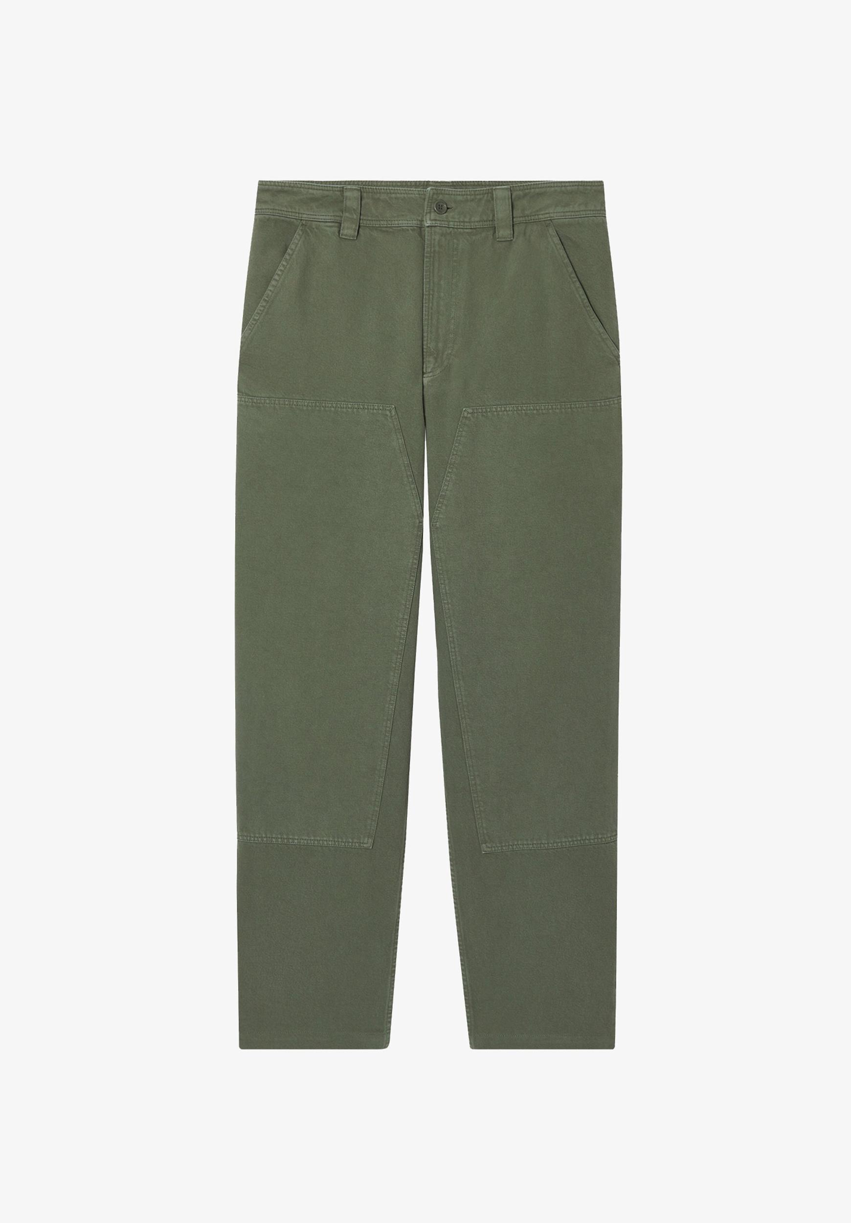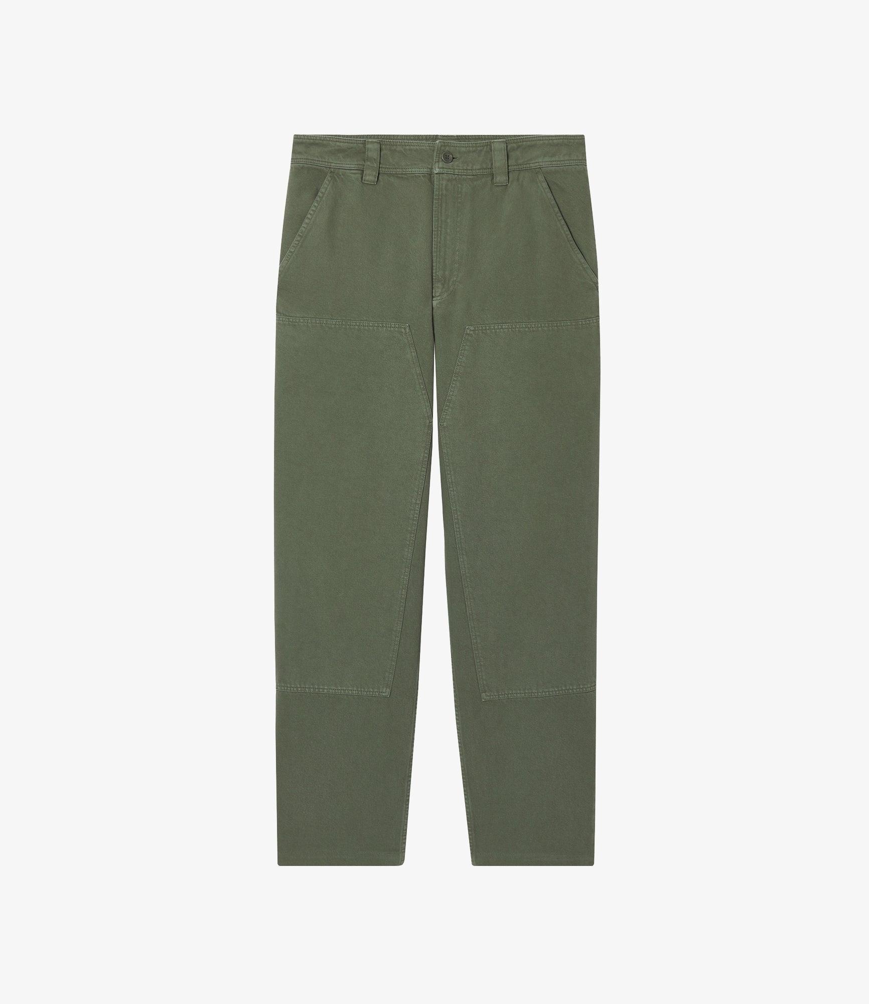 A.P.C. pants.- Heavyweight workwear-style material. - Straight cut with a loose fit. - Mid-rise. - Reinforced knees. - Two diagonal pockets in front. - Two back pockets and two on the side of the legs. - One hammer pocket on the left leg. - Zip fly.