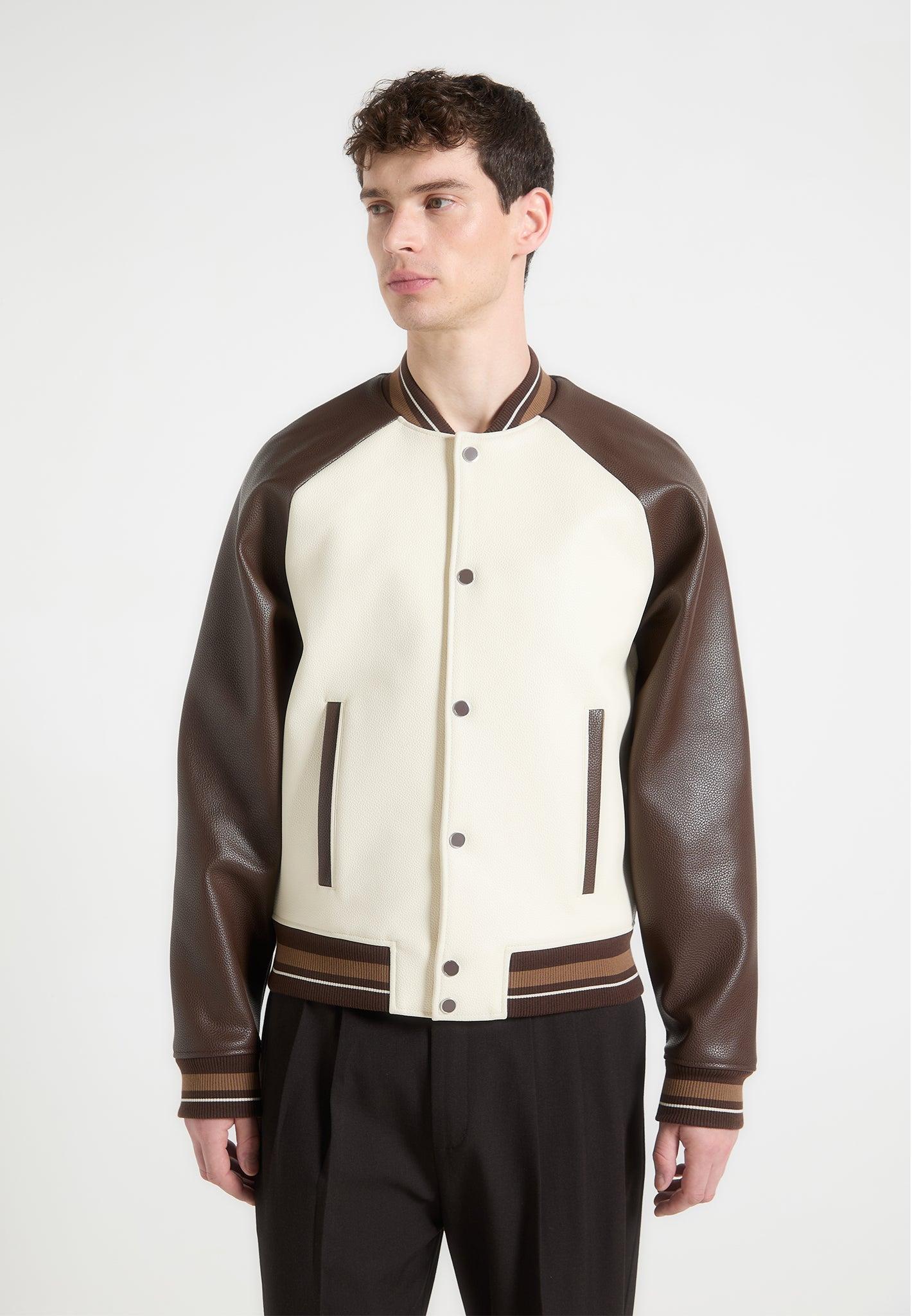 Guy - Contrast Leather Bomber Jacket - Cream/Brown Male