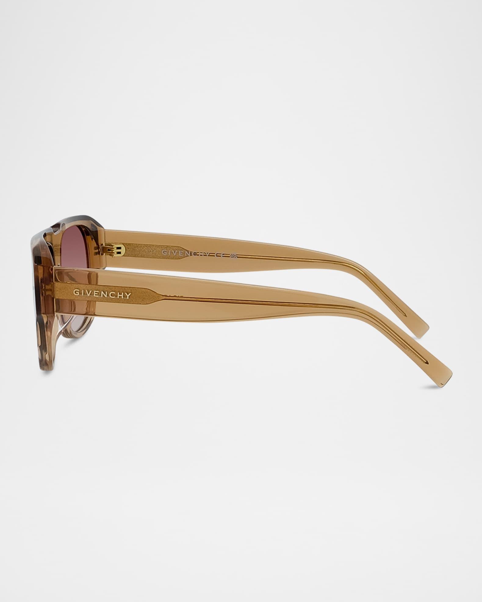 Givenchy square sunglasses are made from biodegradable acetate Eye/bridge/temple (in mm): 55-14-140 Gradient lenses Saddle nose bridge Thick, tapered arms Classic logo on the temples Acetate 100% UVA/UVB protection Imported Proposition 65 warning for California residents