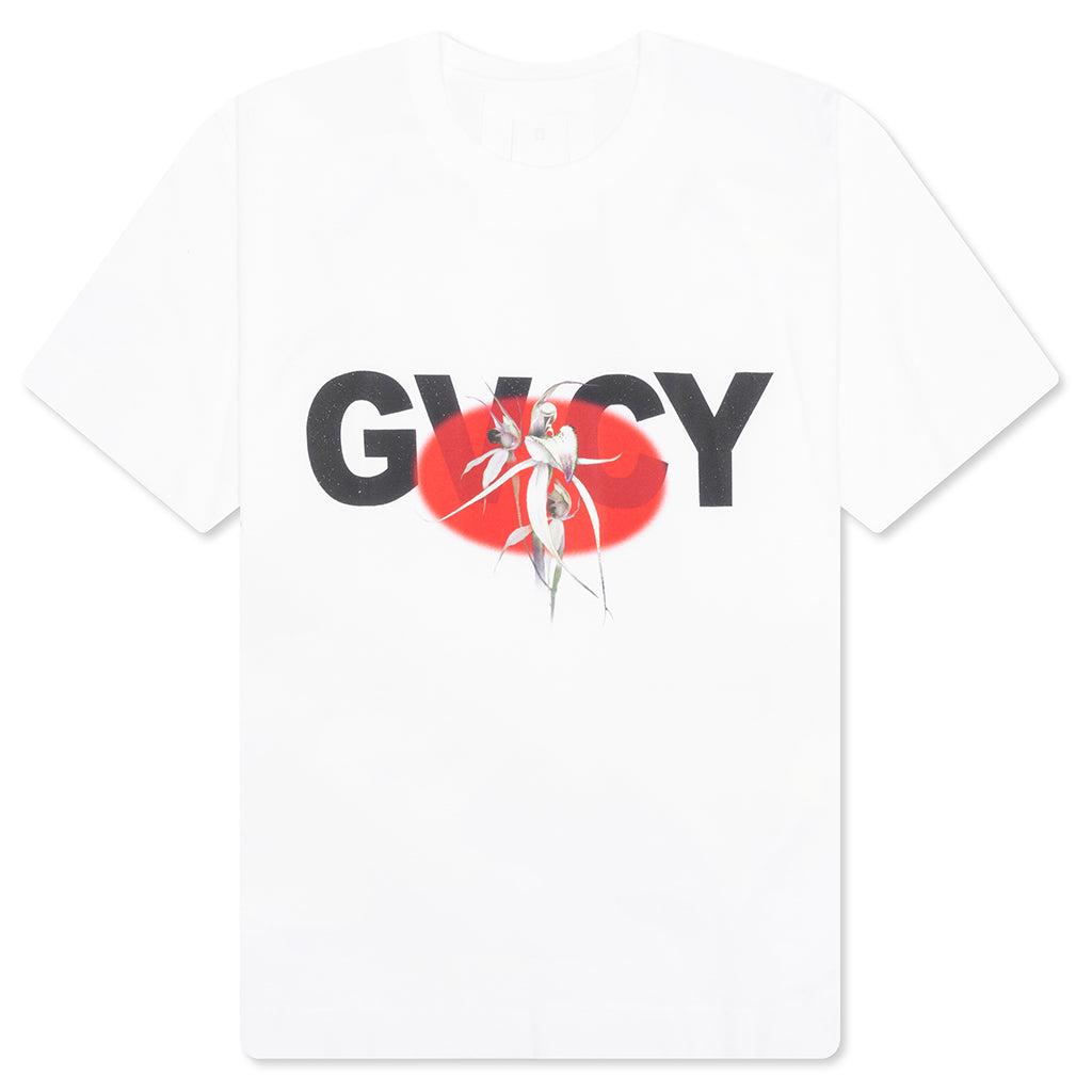 The GVCY Floral Printed Crewneck T-Shirt in White is a stylish and comfortable choice for casual wear. Made from 100% cotton, this t-shirt offers breathability and softness. It features a printed floral GVCY graphic on the front, adding a touch of sophistication to your outfit. Made in Portugal, this t-shirt is crafted with attention to detail and quality. 100% cotton Boxy fit Printed floral GVCY graphic on the front Crewneck design Made in Portugal Style no: BM71JB3YLA-100