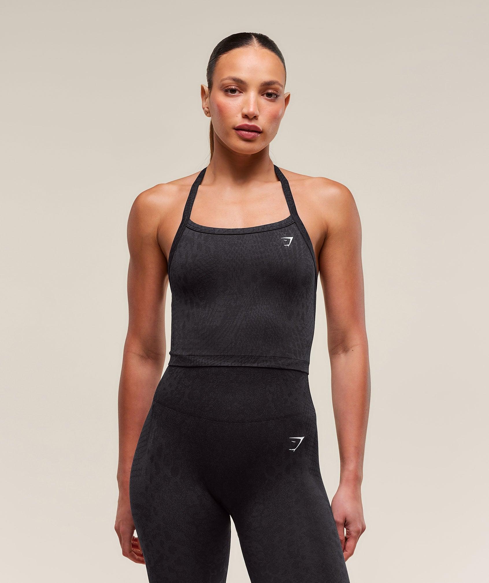 • Flattering halter neck style that also shows your back pump • Stay cool & dry through every rep with sweat-wicking tech• Seamless design for zero distractions & max comfort• Doubled layered fabric• All-over jacquard pattern