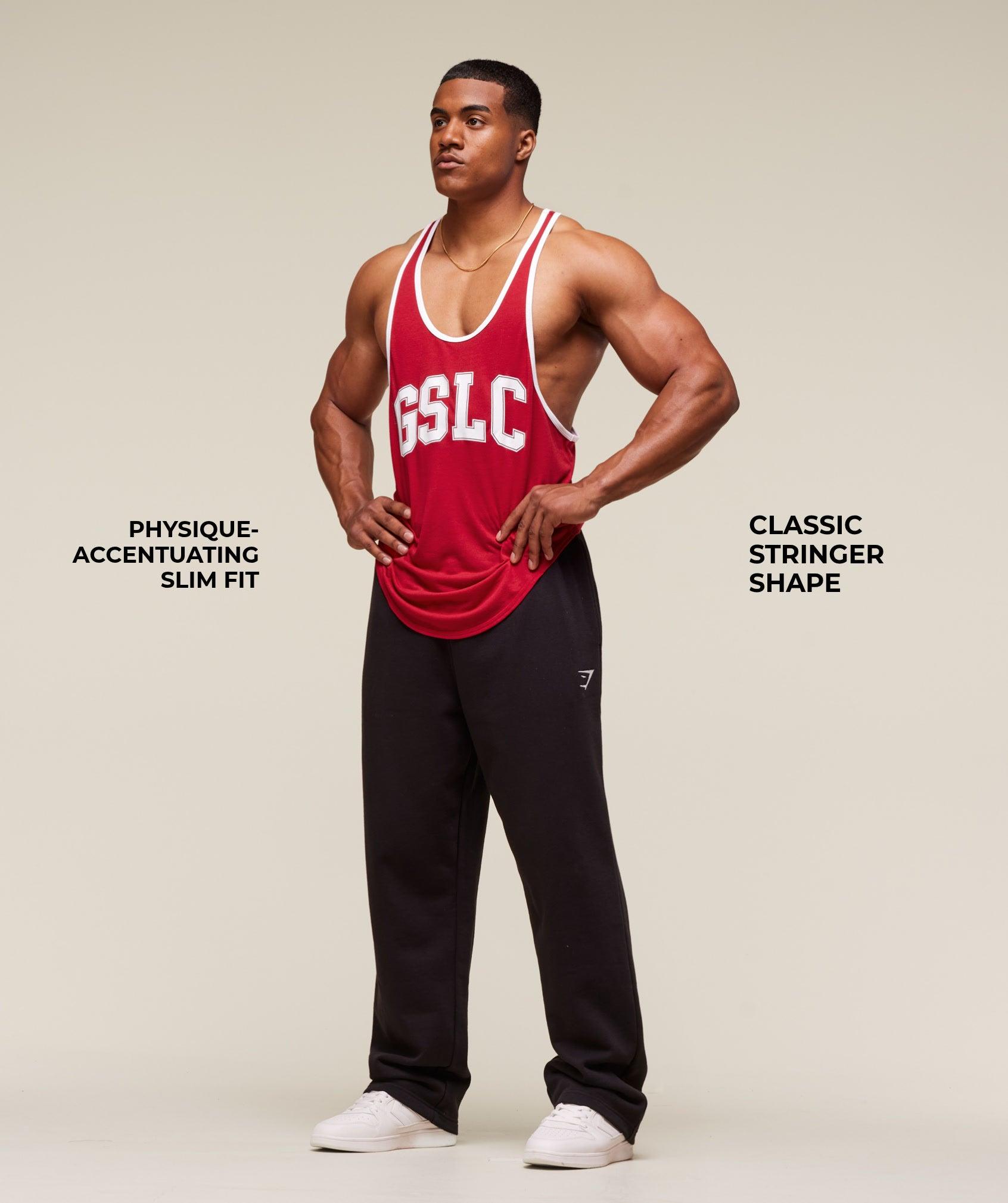 • Comfy, durable fabrics for gym & rest day• Classic stringer shape• Dipped hem accentuates your physique• Zero sleeves, zero distractions• Looks sick• Bold GSLC graphics & contrast piping