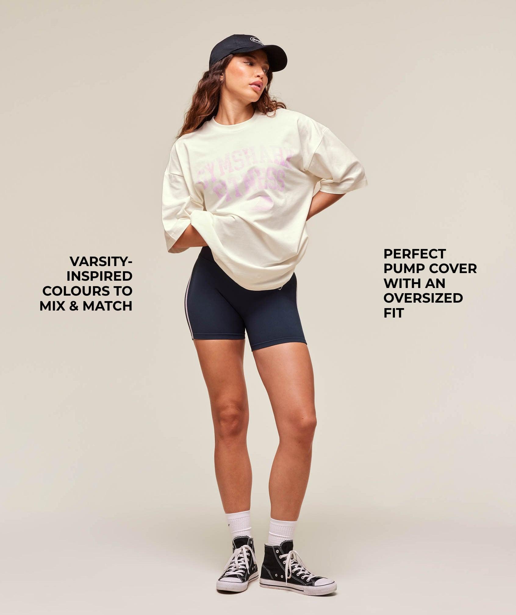 • Perfect pump cover with dropped shoulders & an oversized fit • Varsity graphic on the front and back