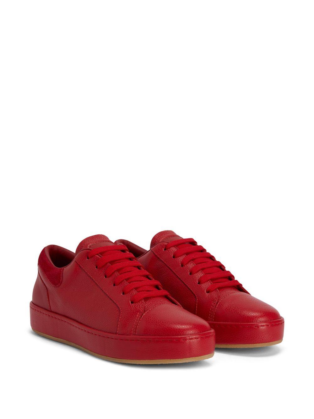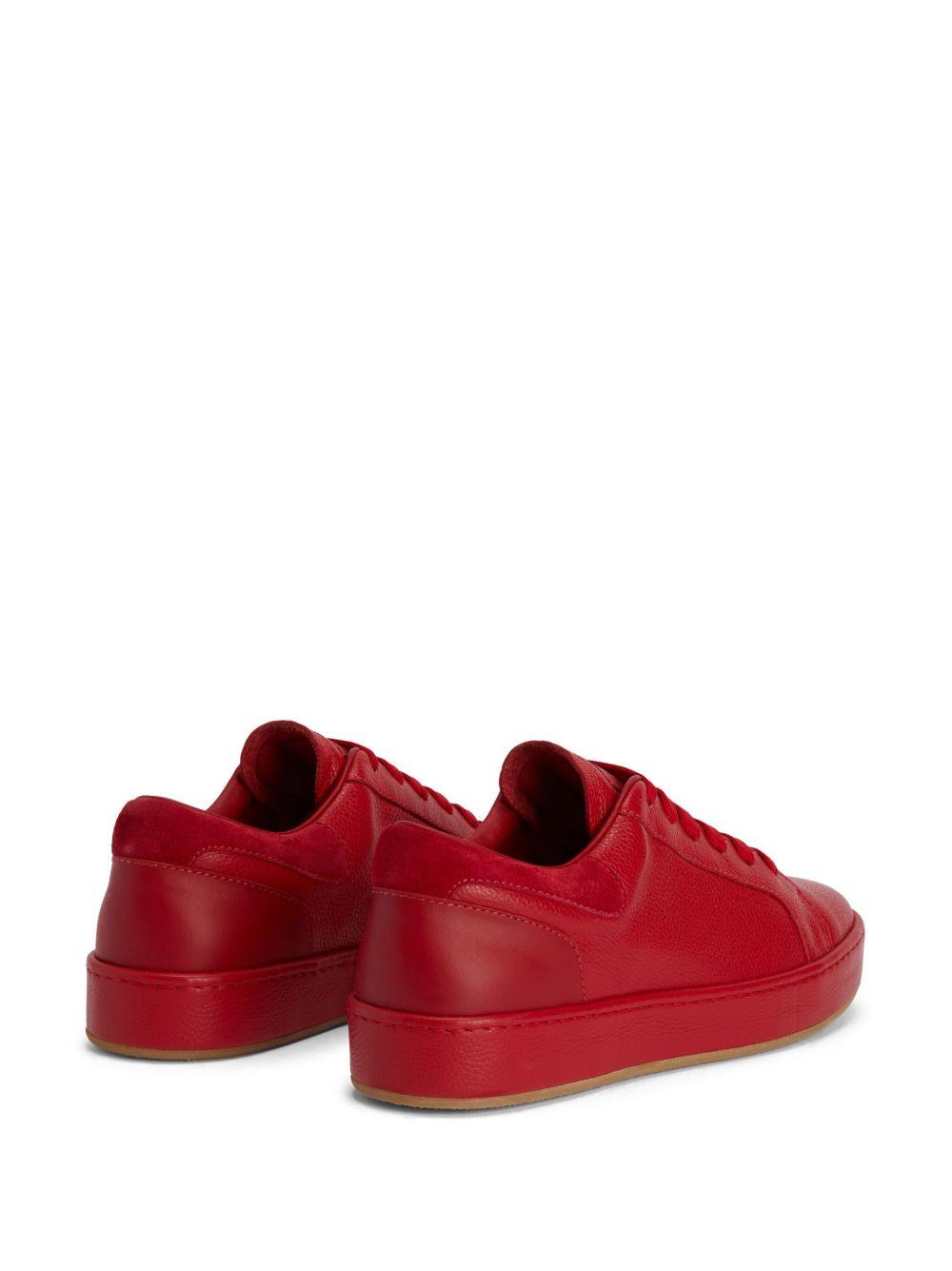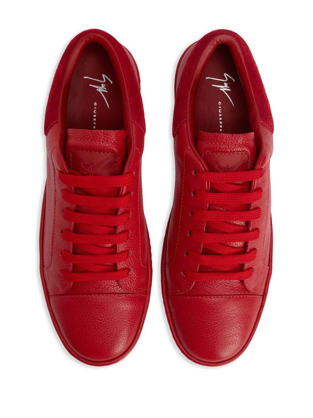 Giuseppe Zanotti GZ-City logo-patch sneakers | Red | dark red | calf leather/cotton | velvet effect | logo patch at the tongue | front lace-up fastening | round toe | branded insole | flat rubber sole | Leather/Suede/Cotton/Rubber/Fabric | Low-Tops | Sneakers | Shoes | Men