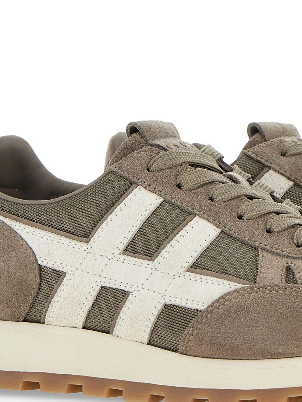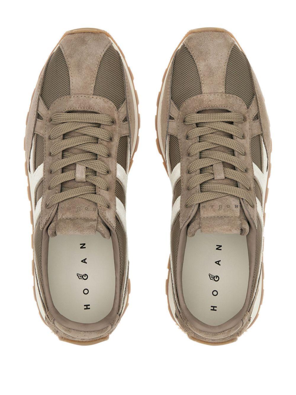 Hogan H671 sneakers | Brown | taupe brown | mesh design | front lace-up fastening | suede trim | logo patch at the tongue | appliqué logo | round toe | branded insole | rubber outsole | Fabric/Calf Leather/Calf Suede/Calf Leather/Rubber | Low-Tops | Sneakers | Shoes | Men