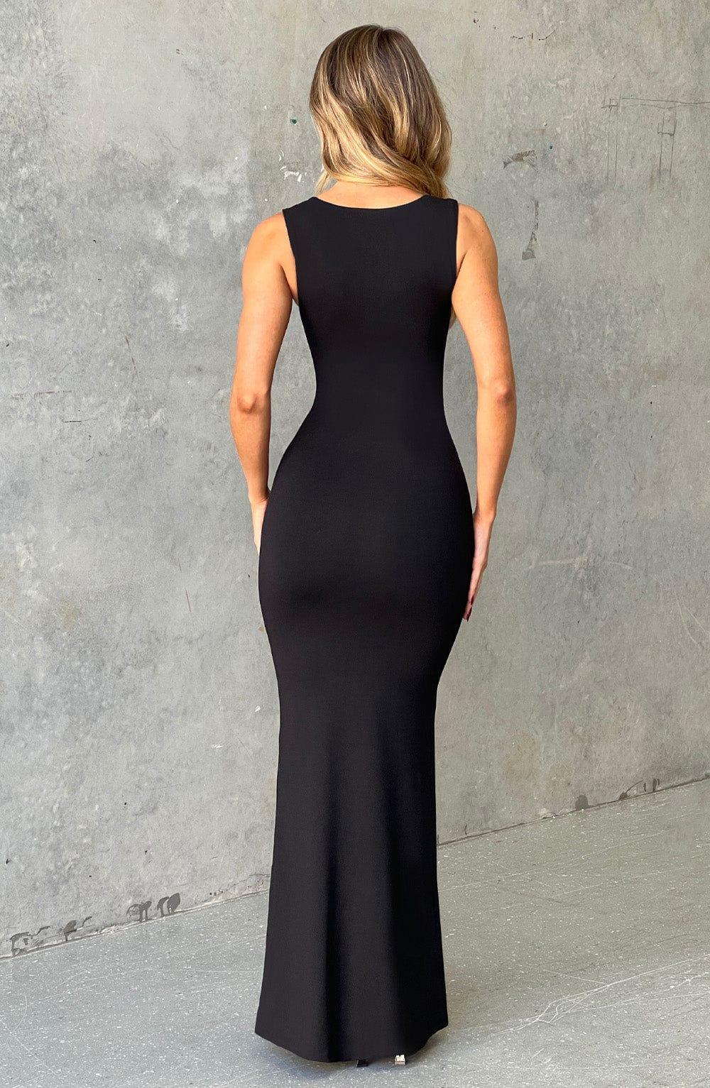 Hadley is the new buttery soft staple you can't live without. Double lined to make you feel fine, the super stretchy, contouring fabric snatches back into shape and moves with your body for your best fit ever. This maxi design is finished with a chic square neckline and wide straps. Wear yours with minimal heels and jewellery for a sleek look. Colour: Jet black. Buttery soft, premium modal fabric. Double layered. Fully lined. Second skin feel. Moulds to your shape. Moves with your body. Soft and stretchy. Square neckline. High back. Wide straps. Maxi length. Model is an XS and is wearing an XS.
