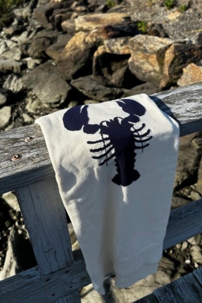 The clean cream base is beautifully contrasted by a bold navy lobster motif, adding a playful yet sophisticated twist to a classic silhouette. Whether you're strolling by the shore or relaxing in the city, this sweater delivers effortless style and all-day comfort.